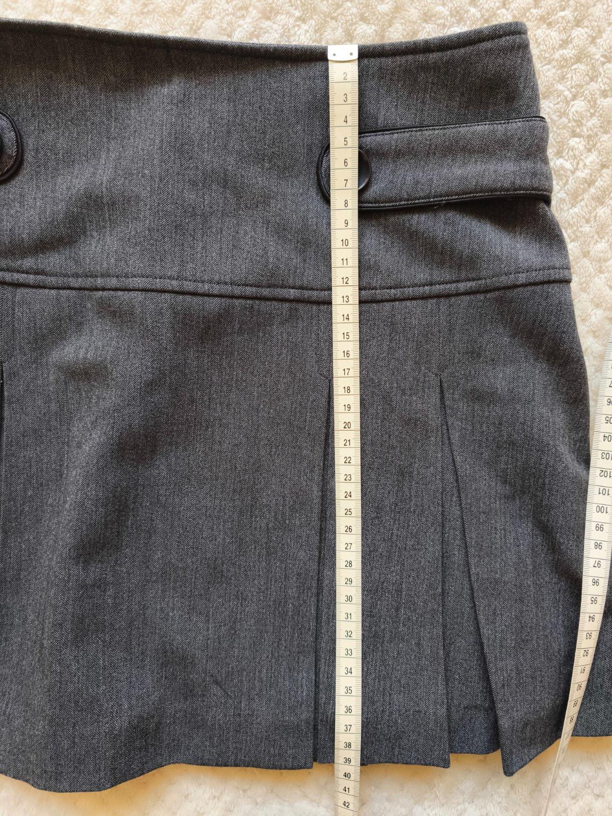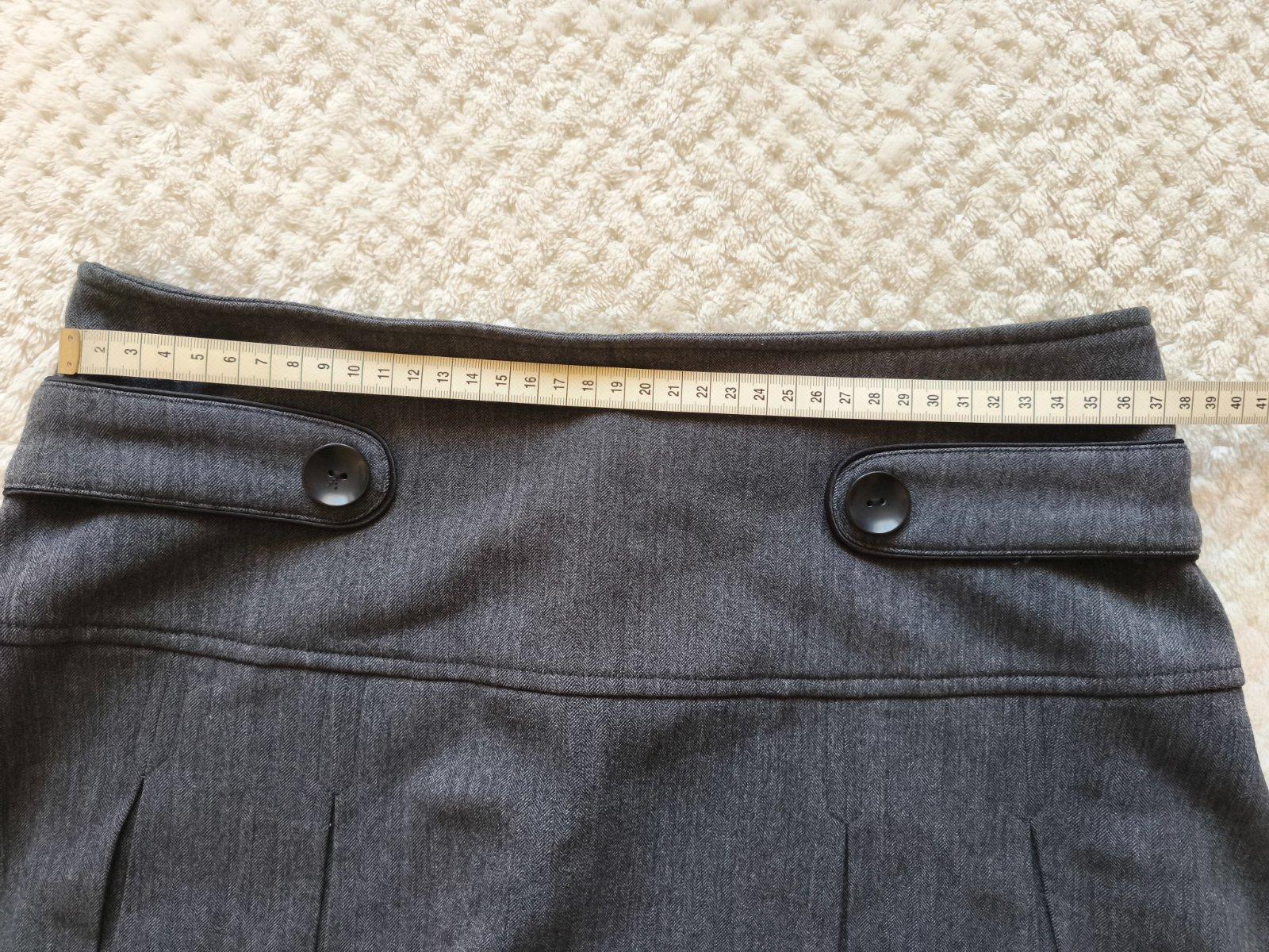 Nenosená krasna suknicka,len odstrihnuty vzadu stitok, je trochu elastická čiže kludne s/m , vzadu je zips, čiže kludne na s, ale oblečie aj m-ko tým že je elastická mierne, da sa nosiť aj na pase nižšie alebo vyššie , velmi pekná suknička .