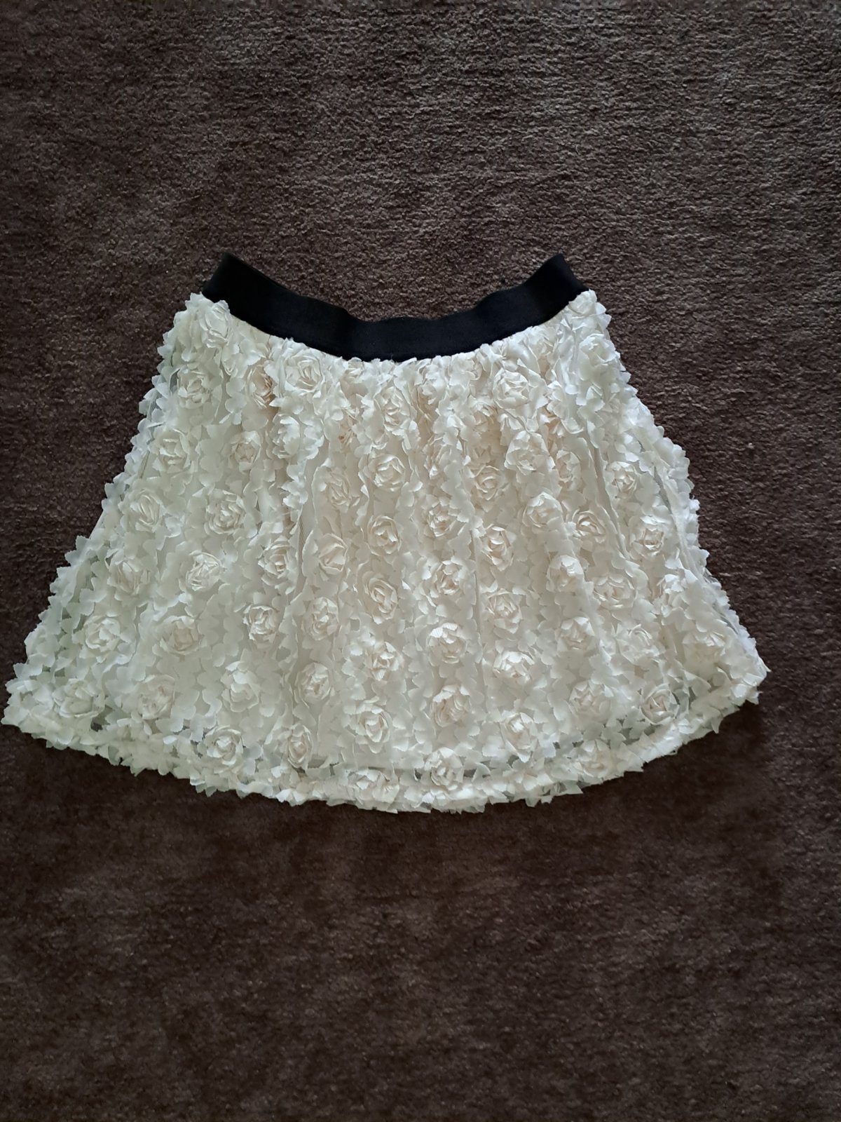 -bohato riasená tutu sukňa v jemne krémovej farbe,v páse guma -veľkosť S,pás v pokoji 31,5 cm,d.48-50 cm -veľkosť M,pás v pokoji 32 cm,d.48-50 cm -zloženie-90% polyester,10% elastan