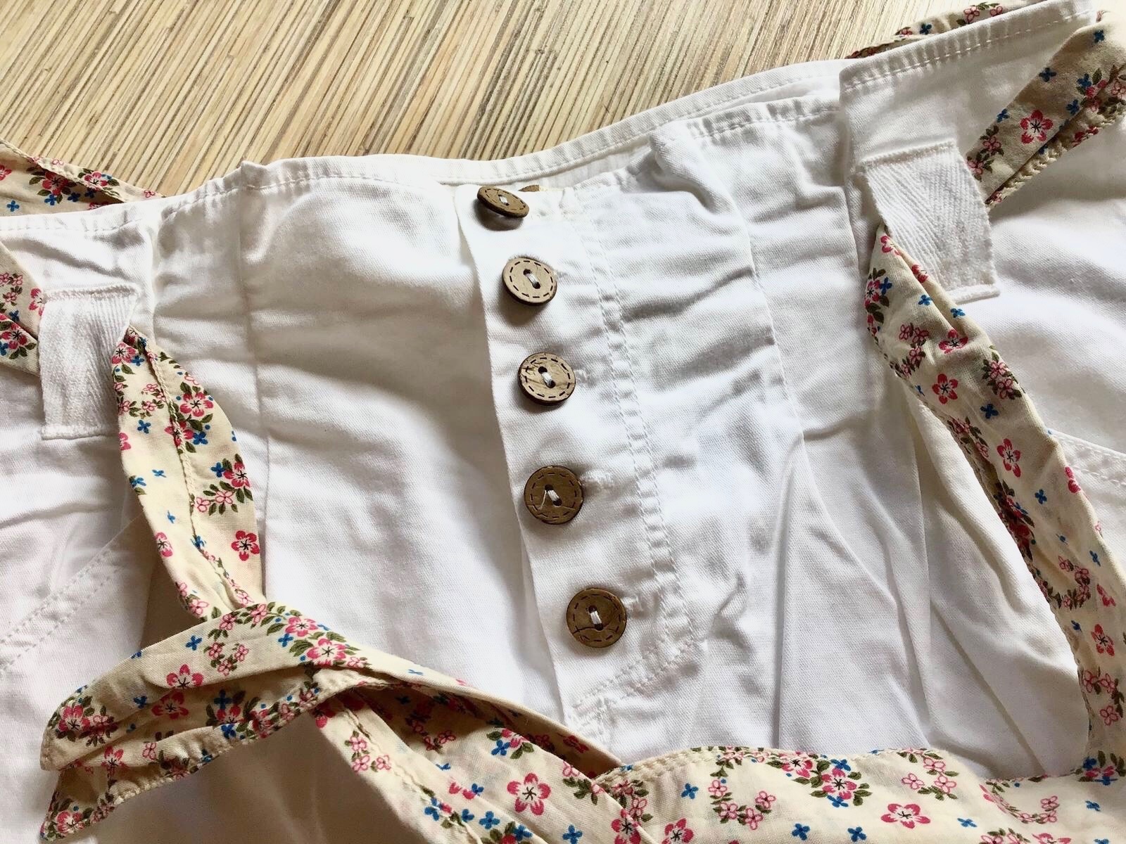 Krasna snehobiela elastická bavlnena skvietkovanym látkovým opaskom len oprana
