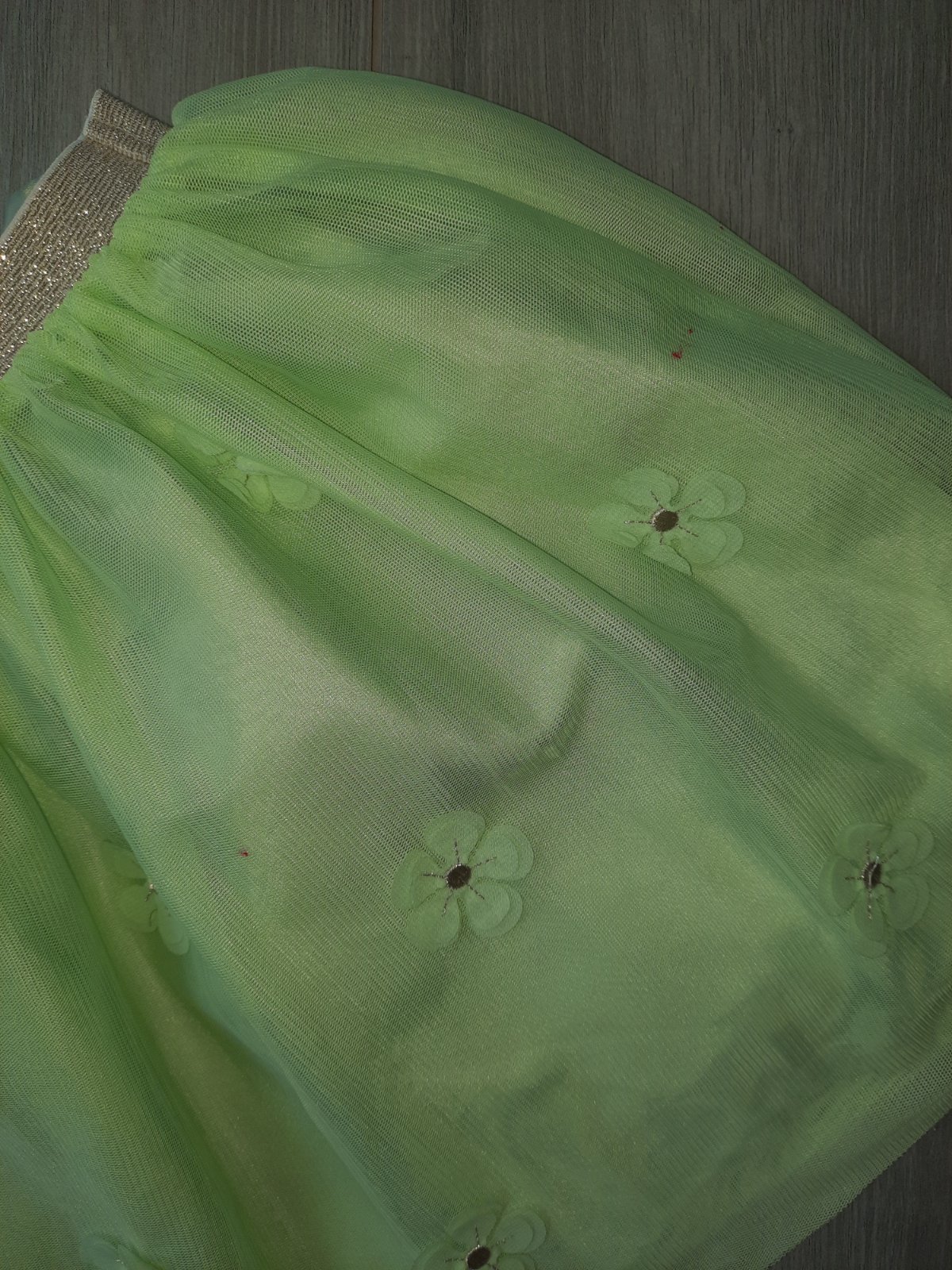 Akurat 3 fliacky od cervenej z vytvarky..pri noseni nejak nebiju do oci ale su,kdesi zatiahnutie tylu,preto cena nizka,pas zlata gumka,paradu narobi