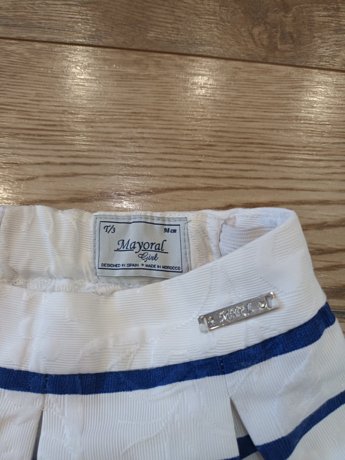 predám sukňu Mayoral, veľ. 98 na roky, dĺžka 33,5, pás 25,5 s reguláciou a so zipsom, v top stave, (tenučká bavlna s polyesterom), cena 3,- plus pošt.