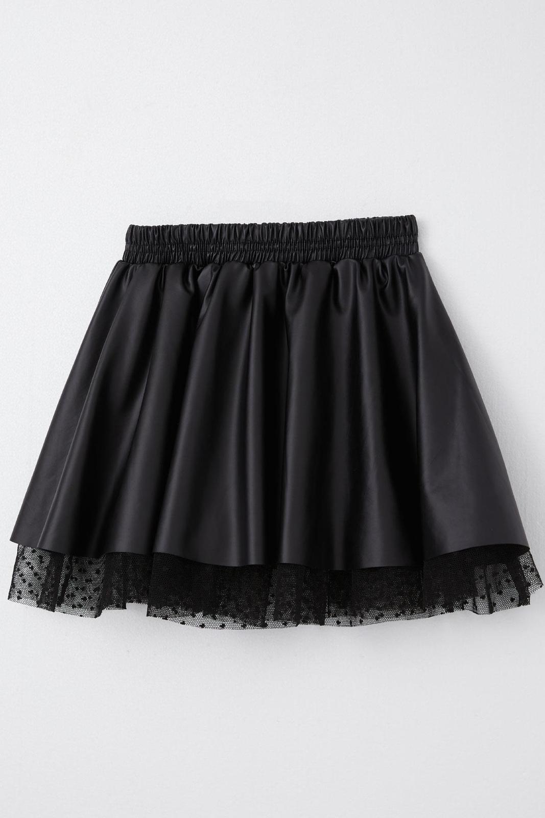 Dievčenská sukňa s podšívkou z bodkovaného týlu ,vrchný material imitacia eko kože.Sukňa je ľahká,padavá ,v pase s pružnou gumou