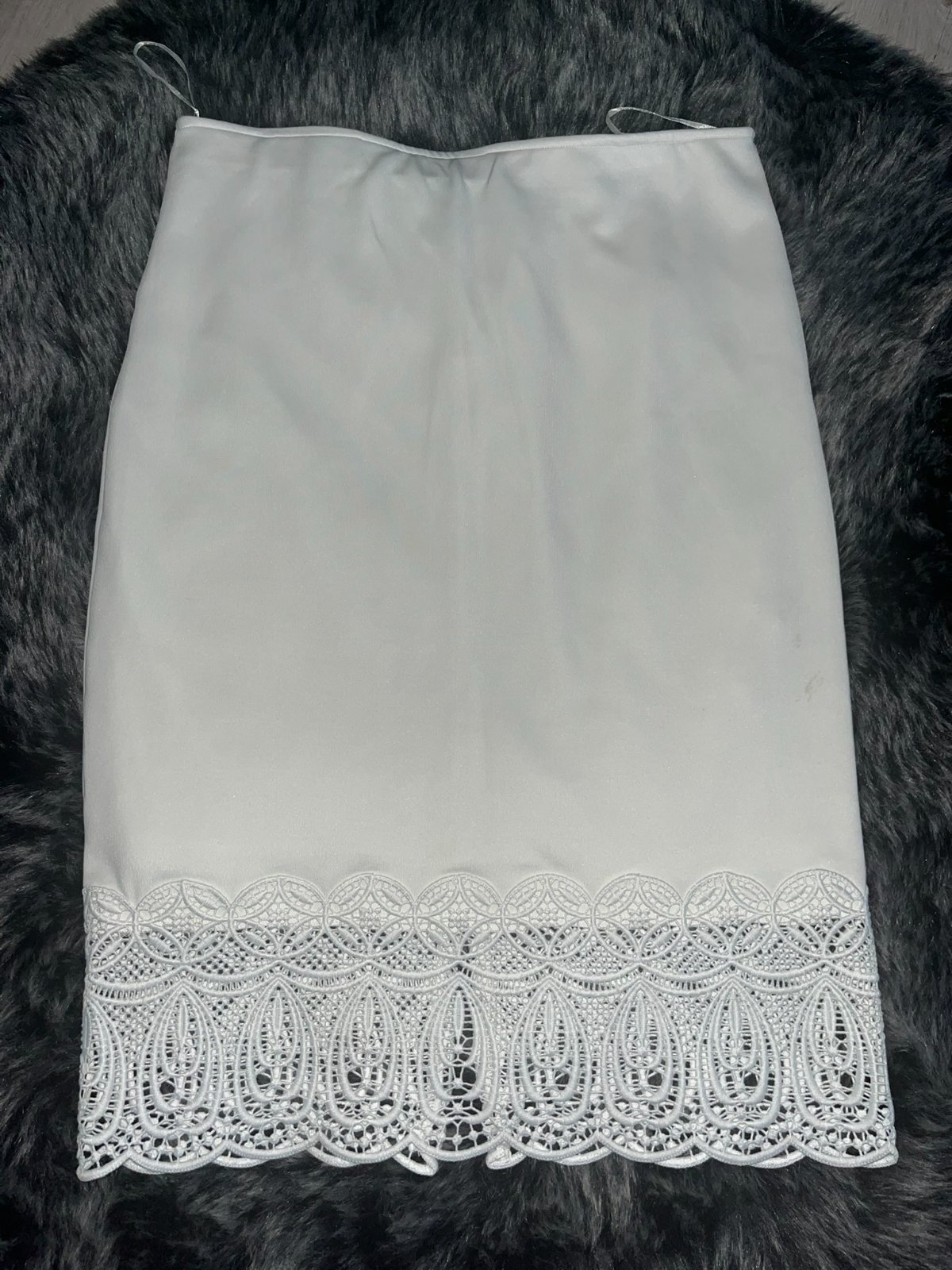 biela mierne pružná sukňa s podšívkou, zakončená kvalitnou krajkou