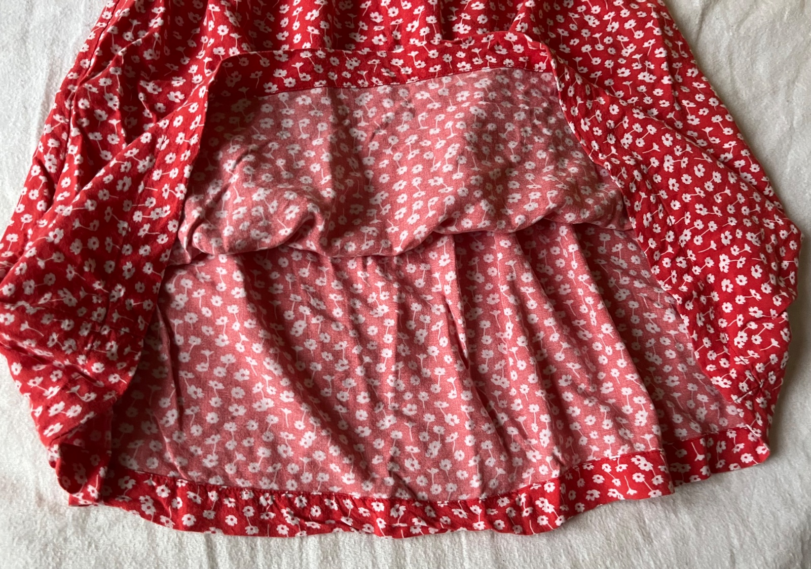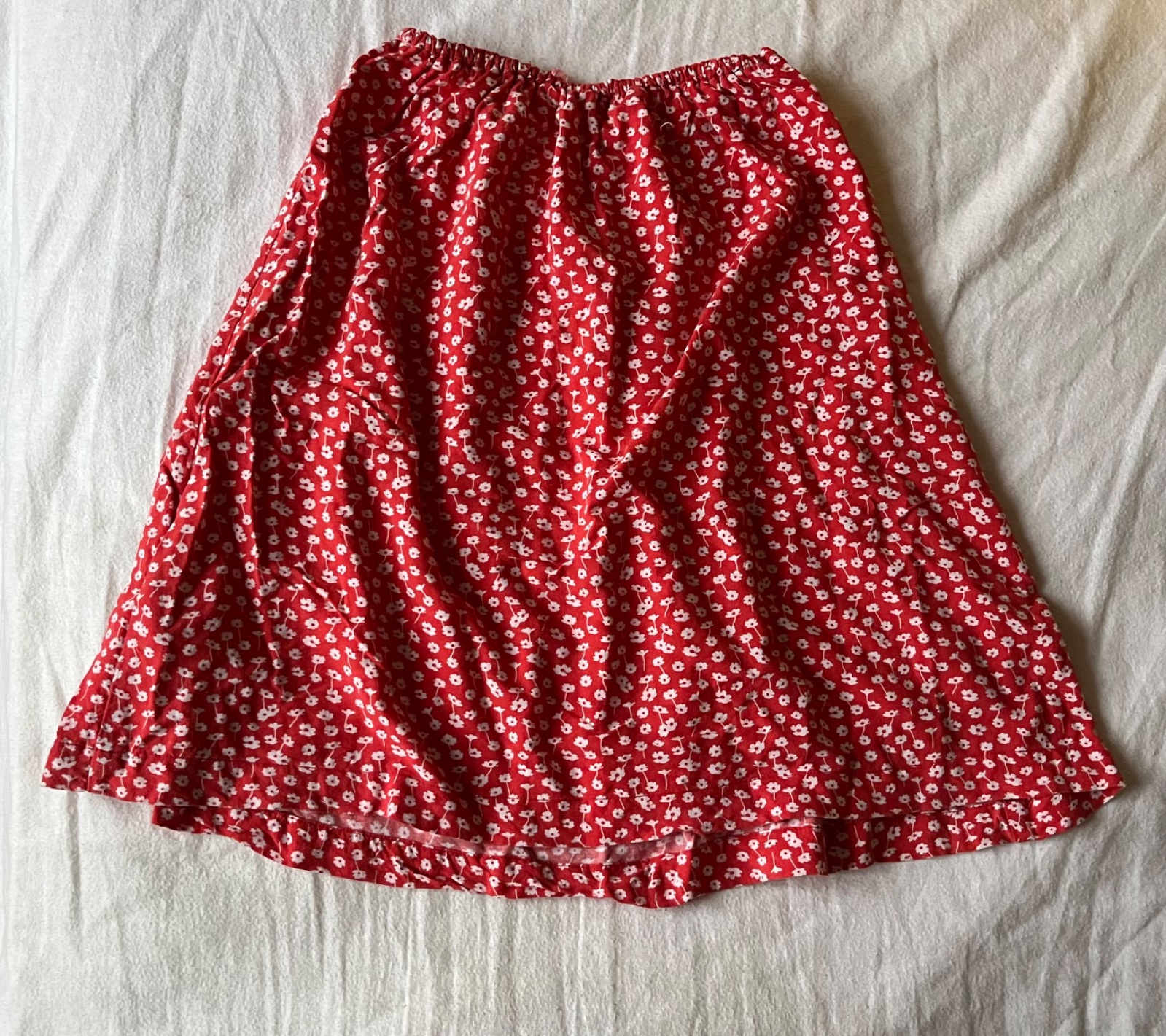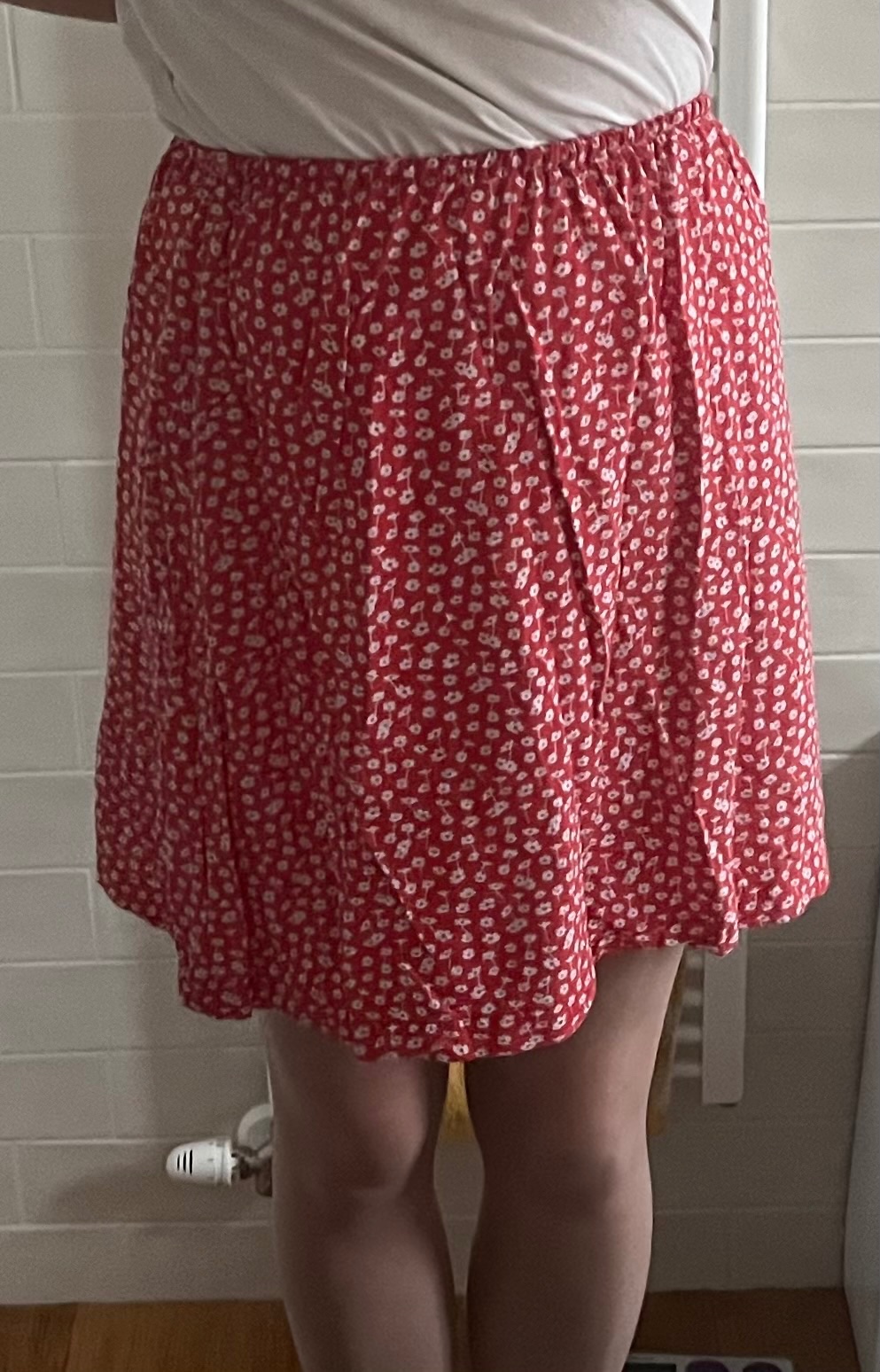- párkrát nosená červeno - biela kvetovaná sukňa