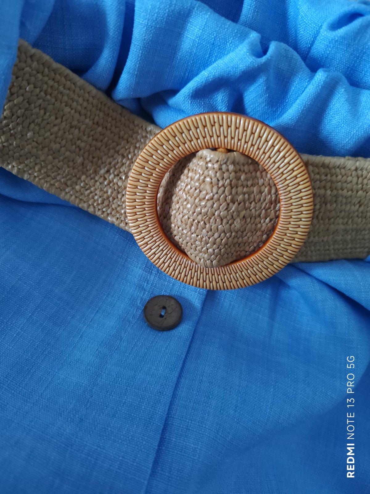 Bezchybná,v páse guma+gumičkový opasok,falošné zapinanie-gombiky sú iba ozdobné,nemá vrecká