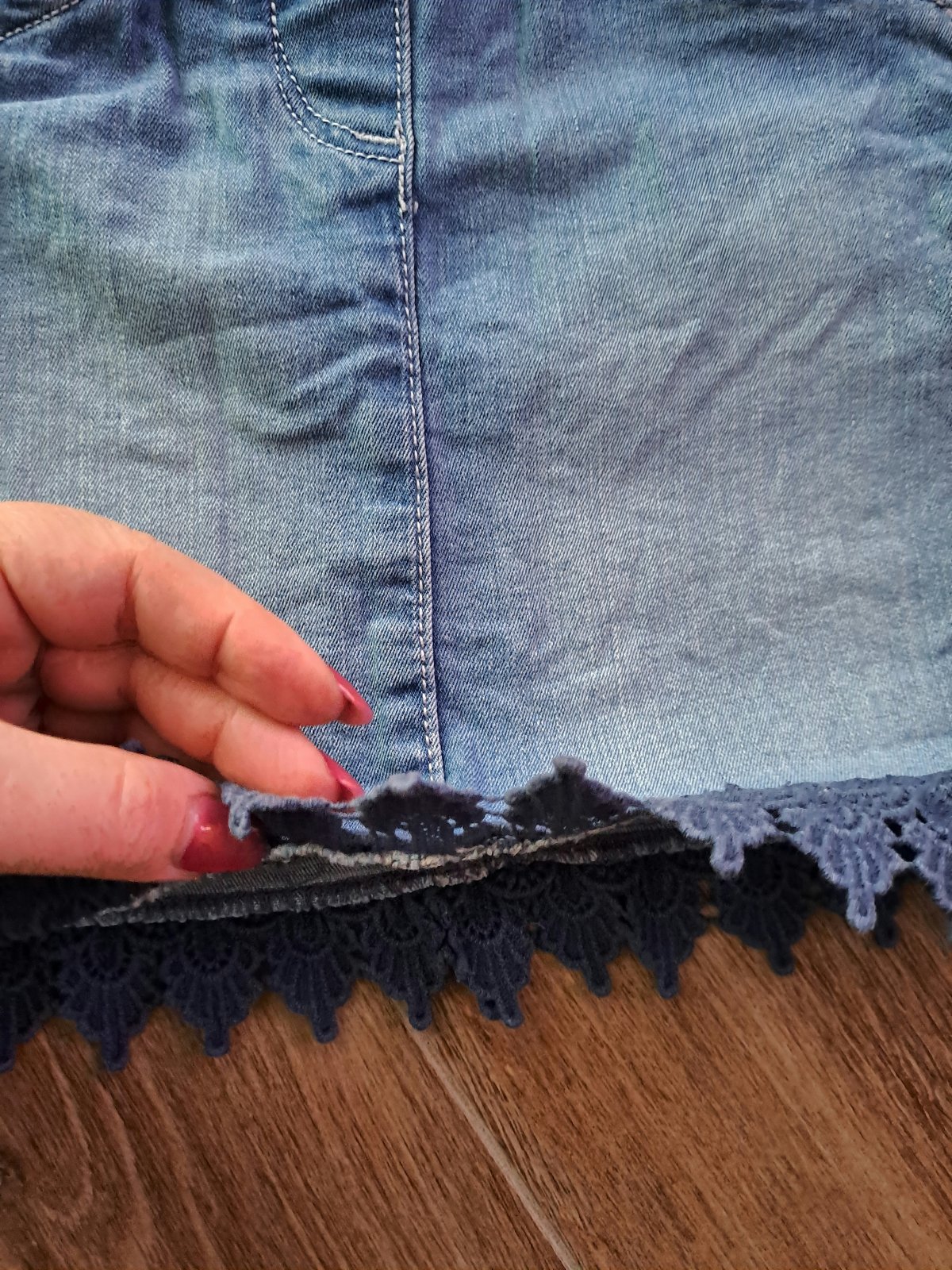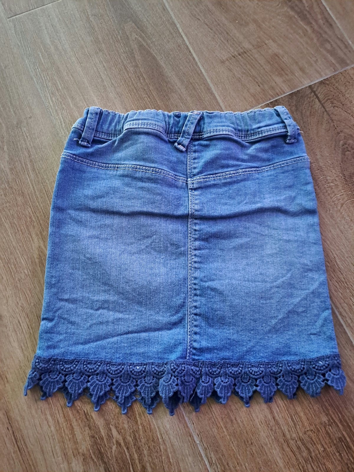 Veľkosť 110/116 Krásna riflovka suknicka v super stave. Dĺžka 29 cm, pas 25-27x2 cm.