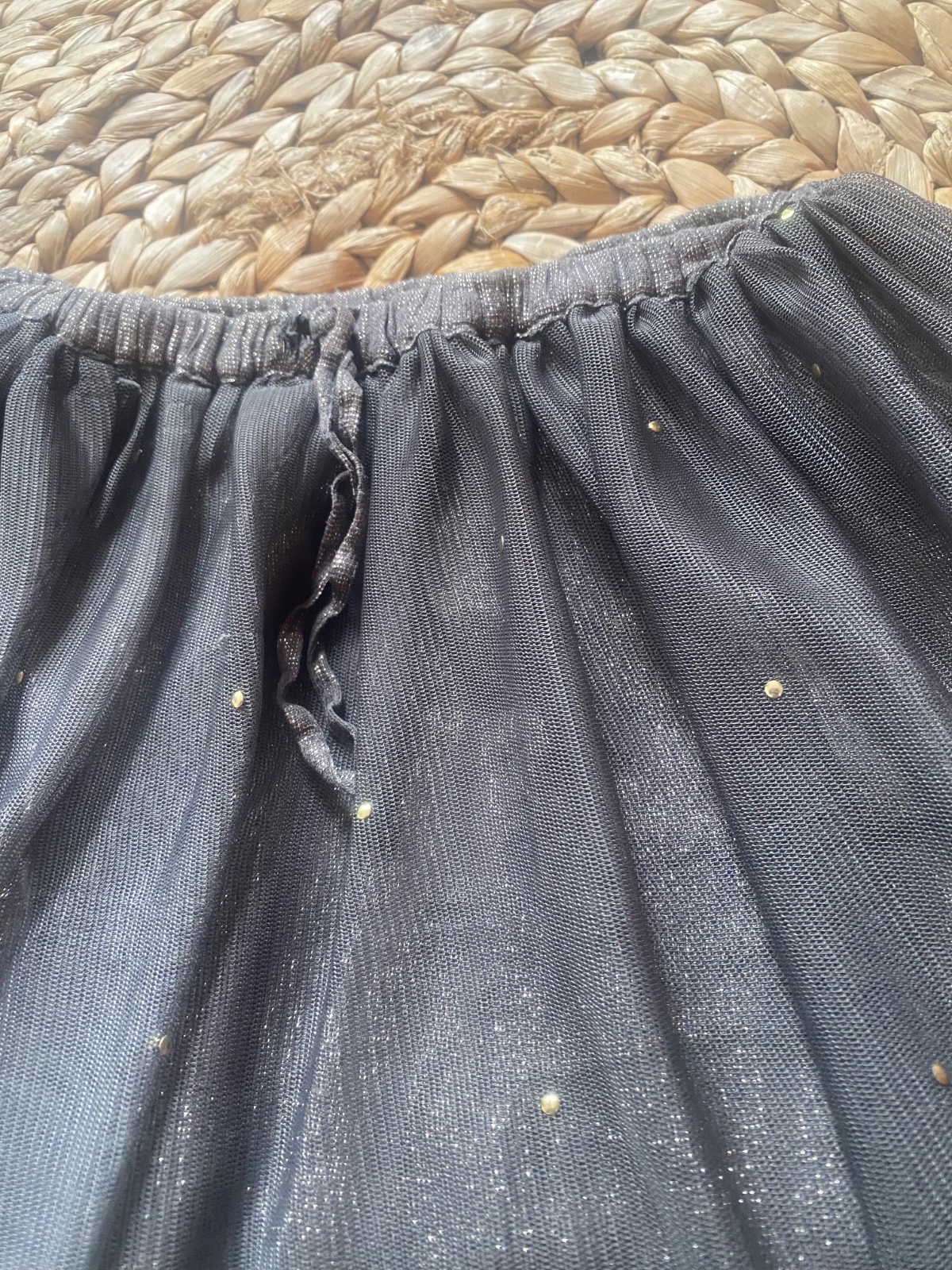 minimálne nosená z jemného flanelu popretkávaná striebornou niťou, spodnička s volánom, dlžka 36 cm, bez spodničky 31cm , pás s gumovou oásovkou v zadnej časti 2x25cm (v kľude)