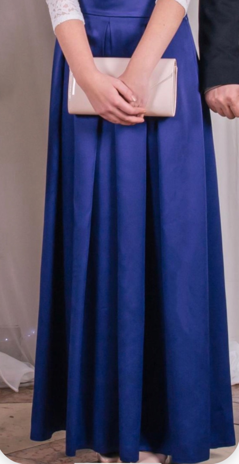 Saténová skladaná sukňa šitá na mieru, použitá na 2 príležitostiach. Kráľovská modrá