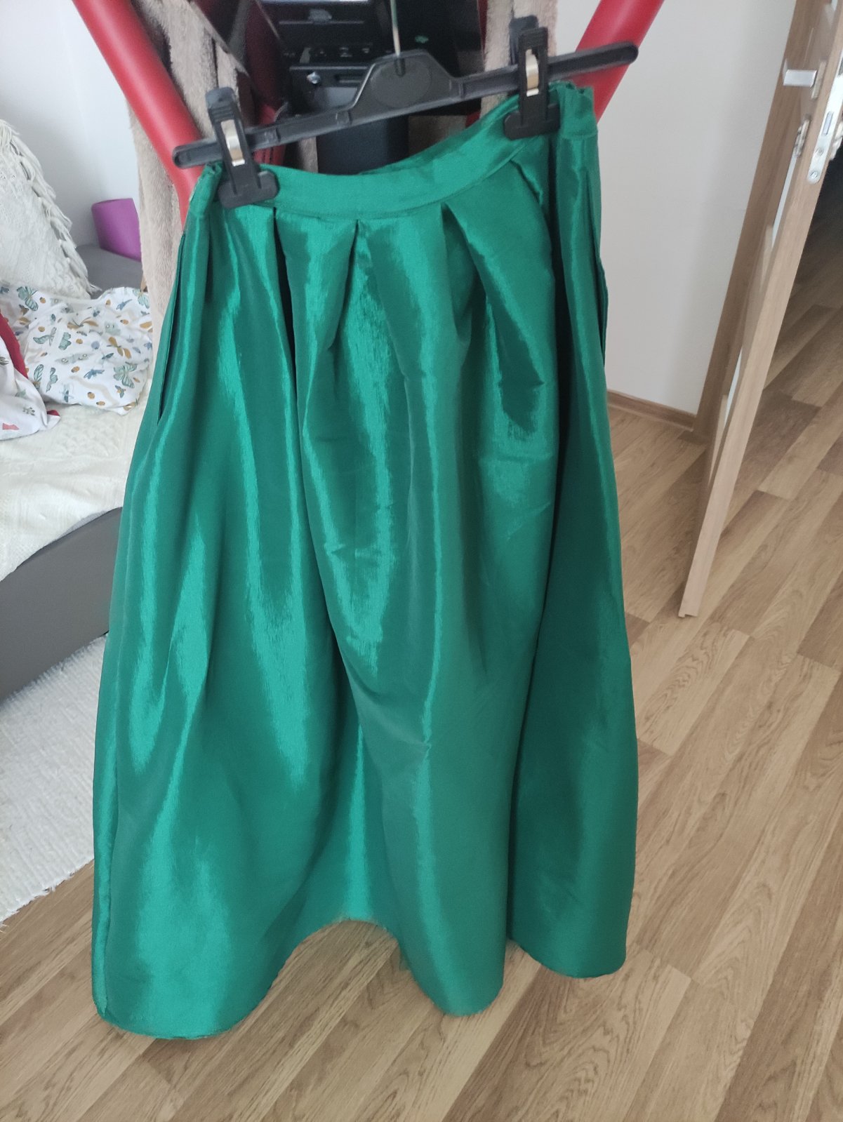 Predám smaragdovo zelenú suknu na ples. 1x oblečená. Zapinanie na zips , vrecká. Rozmery na fotke. Ja som vysoka cca 177cm a bola az po zem. Veľkosť cca 42/XL.