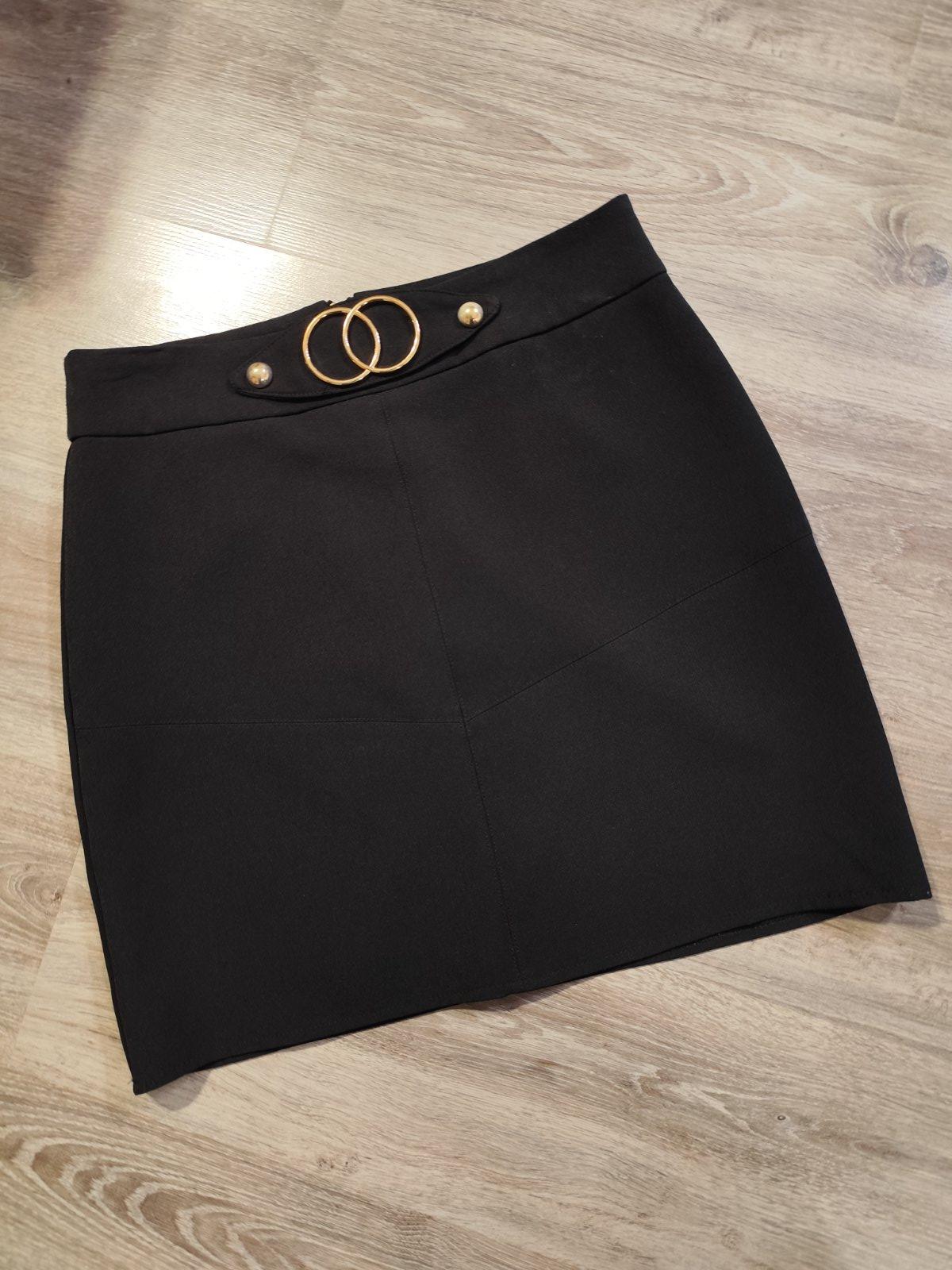 Sukňa z eko kože , veľkosť 42 , dlhá je ako na fotke 46 cm , cez pás má 90 cm ,cez boky má 107 cm ,a celkom dole má 112 cm