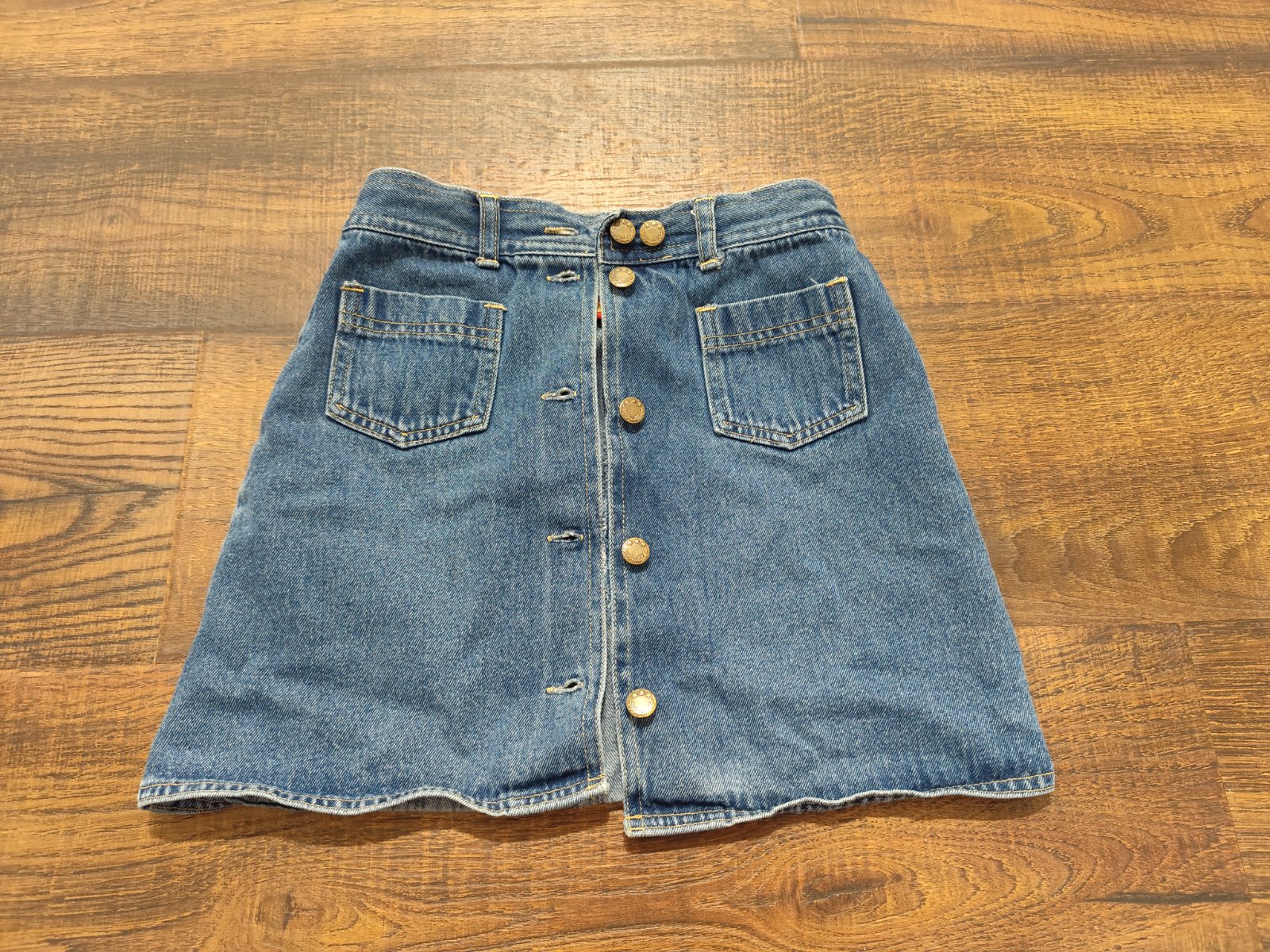 Riflová sukňa, zapínanie vpredu na gombíky, po jednom dieťatku, super stav