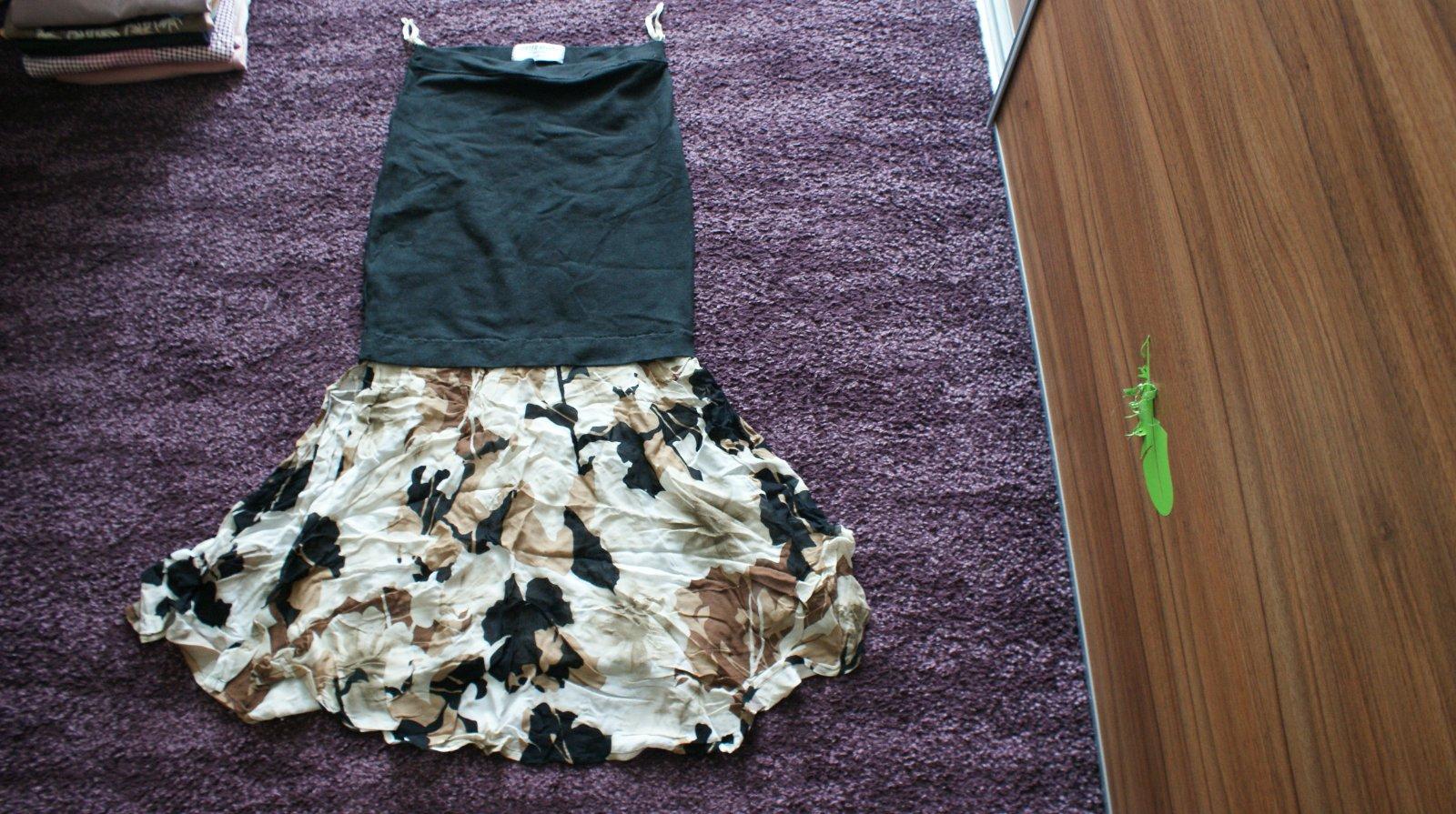 Ponukam zaujimavy dlhsiu suknu, hore bavlnena jemne elasticka cierna, ktora tvaruje postavu a dole asi sifonova latka, po bokoch rozstrihnuta pre lepsiu chodzu. Je vo velmi peknom stave, malo nosena. Postovne podla tarif SP.
