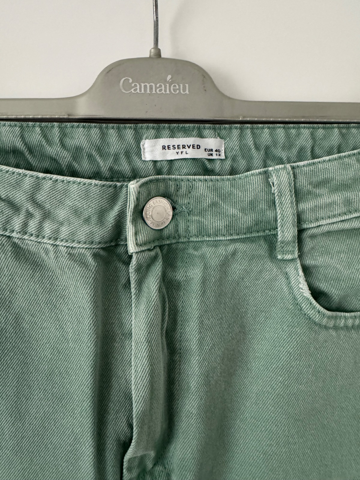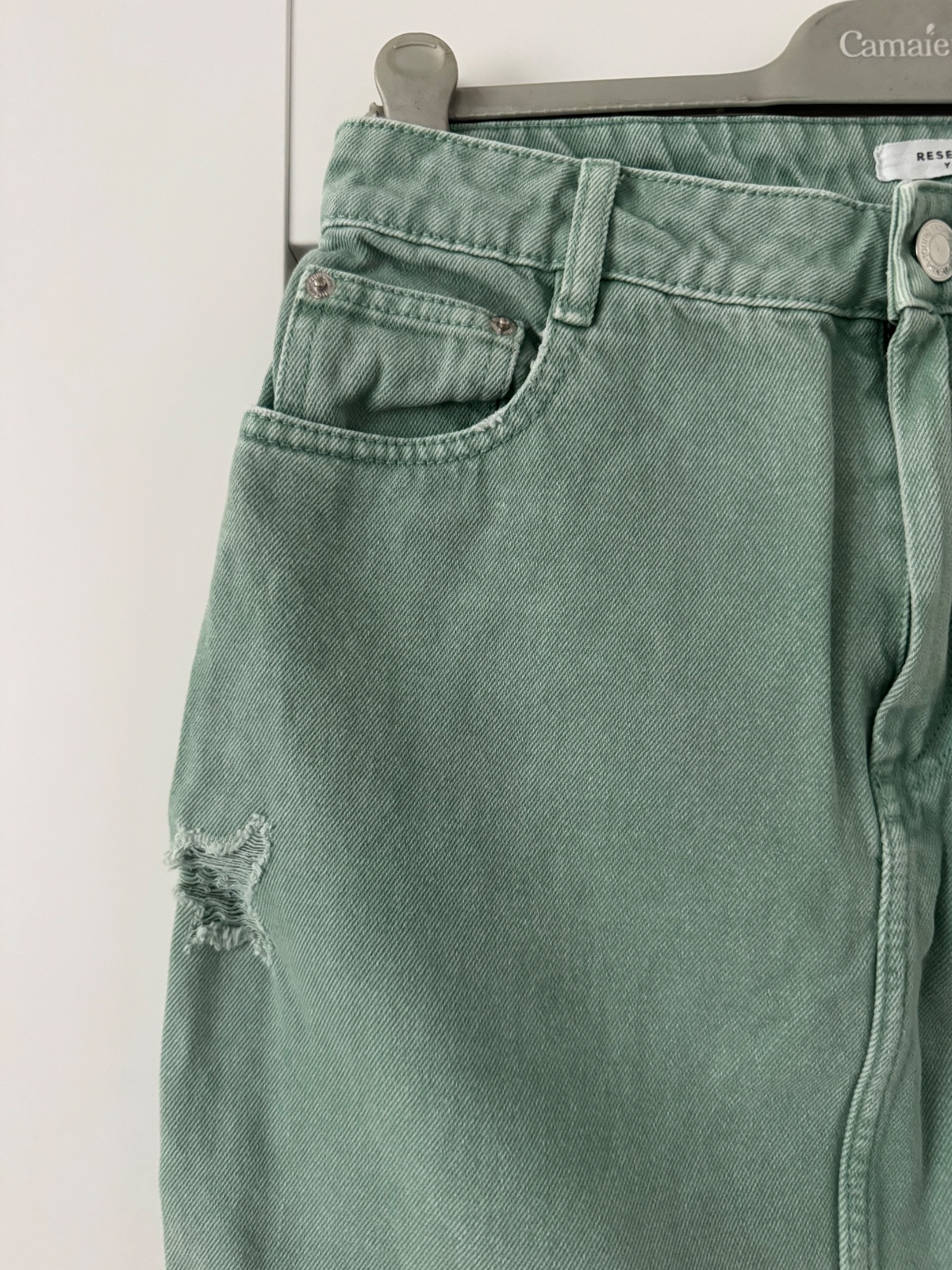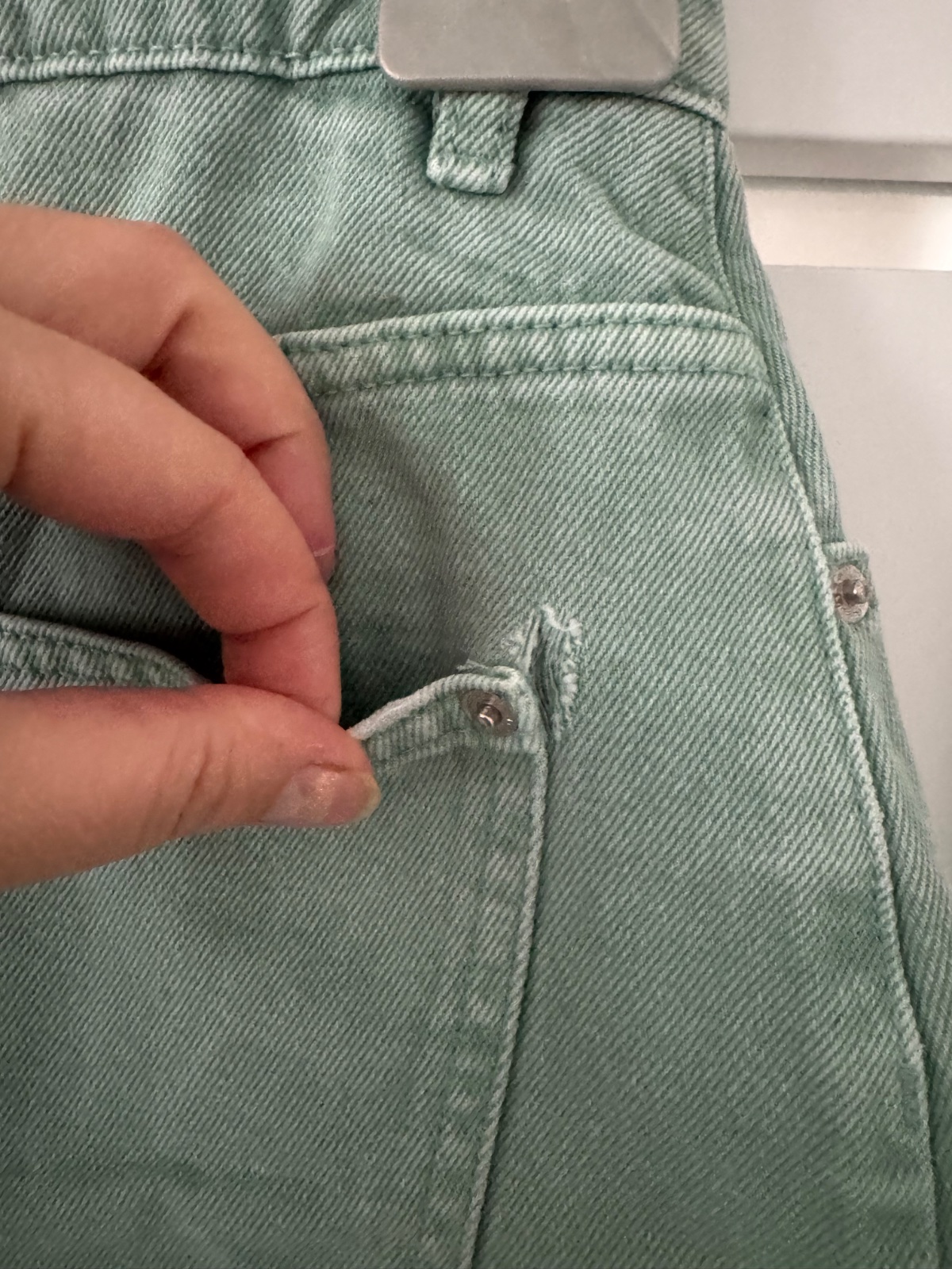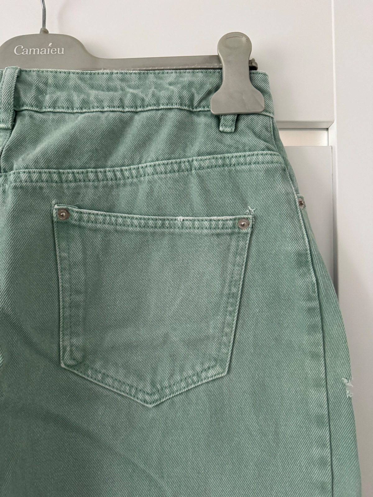 Ma uplne super stav, len jednu nedokonalost, pri vreckach vzadu ma akoby roztrhanena obidvoch stranach. Šikovné si to vedia upravit, alebo nosit s predlzenym tričkom. Ja som si to všimla až pri foteni, cize dovtedy som to normalne nosila aj s tym. Posuvam za symbolicku cenu.