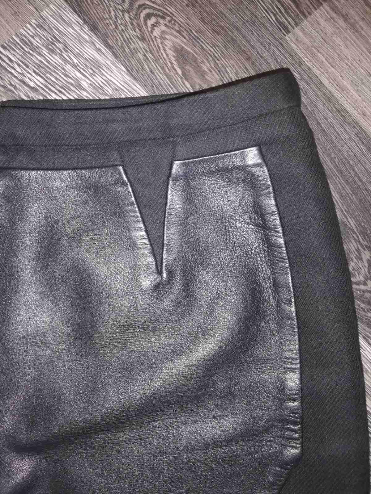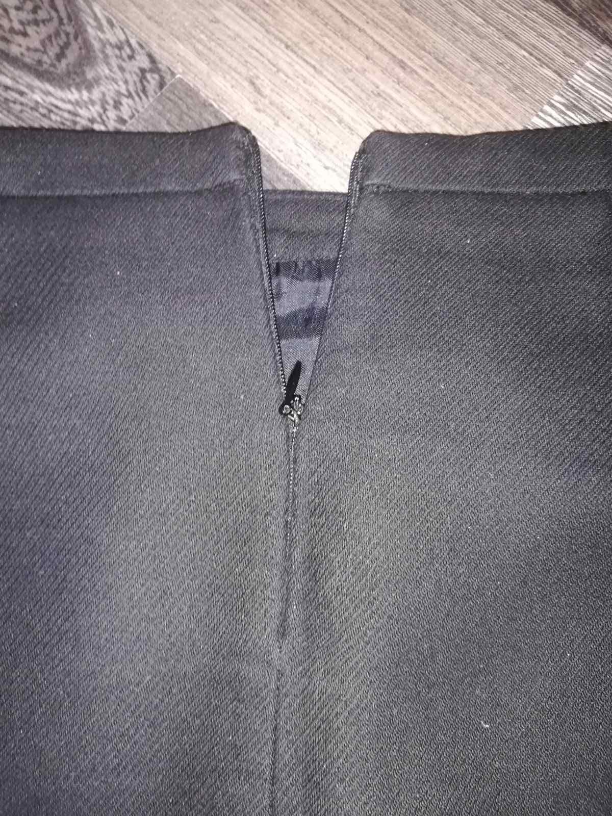 Pravá koža - jahňacia kombinovaná s látkou, výborný stav,zips vzadu sa dá rozopnut do polky,nevadilo mi to,obliekla som v pohode, veľkosť 36, pás 38 cm,d.35 cm
