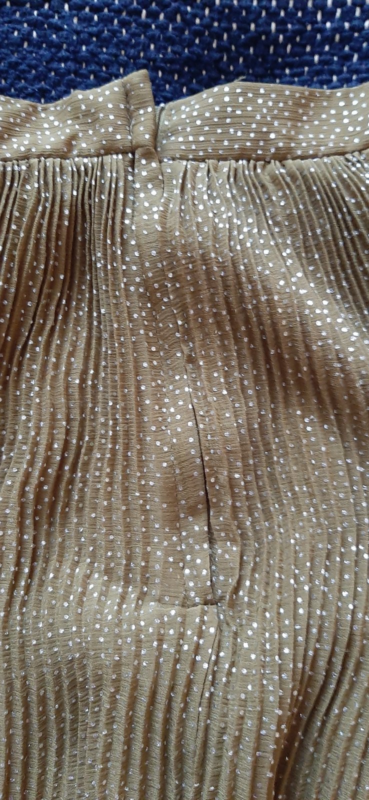 Plisovaná s podšívkou. Pás 37, dĺžka 53 aj s pásom, vzadu zapínanie na zips.
