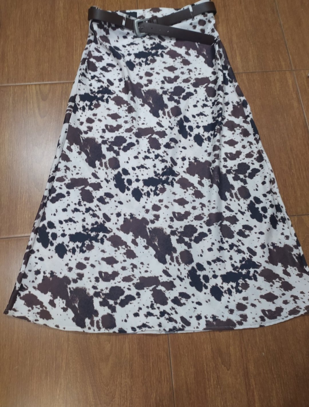 Krásna saténová suknička s opaskom.Rozsireny strih Pas pevný na boku zips