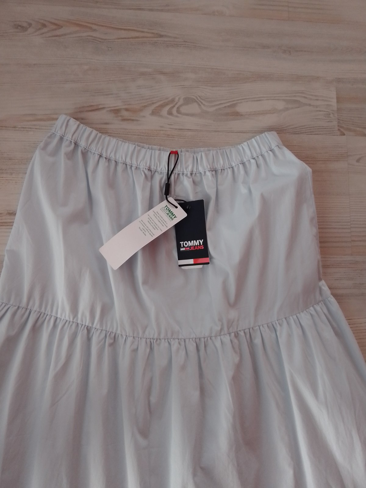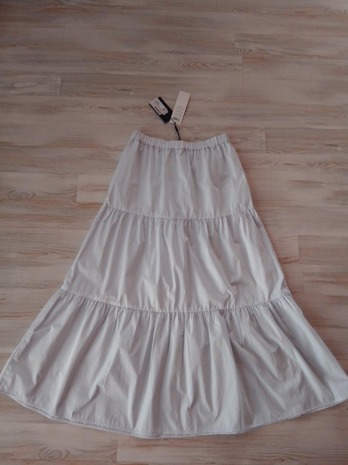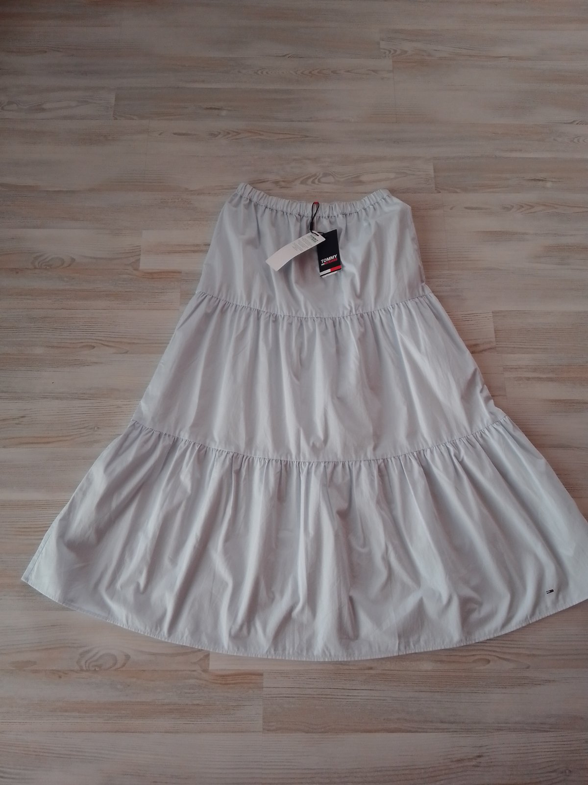 Padavy, ľahký materiál. V páse gumky. Dá sa nosiť ako sukňa, ale aj ako šaty (tie gumičky cez prsia).