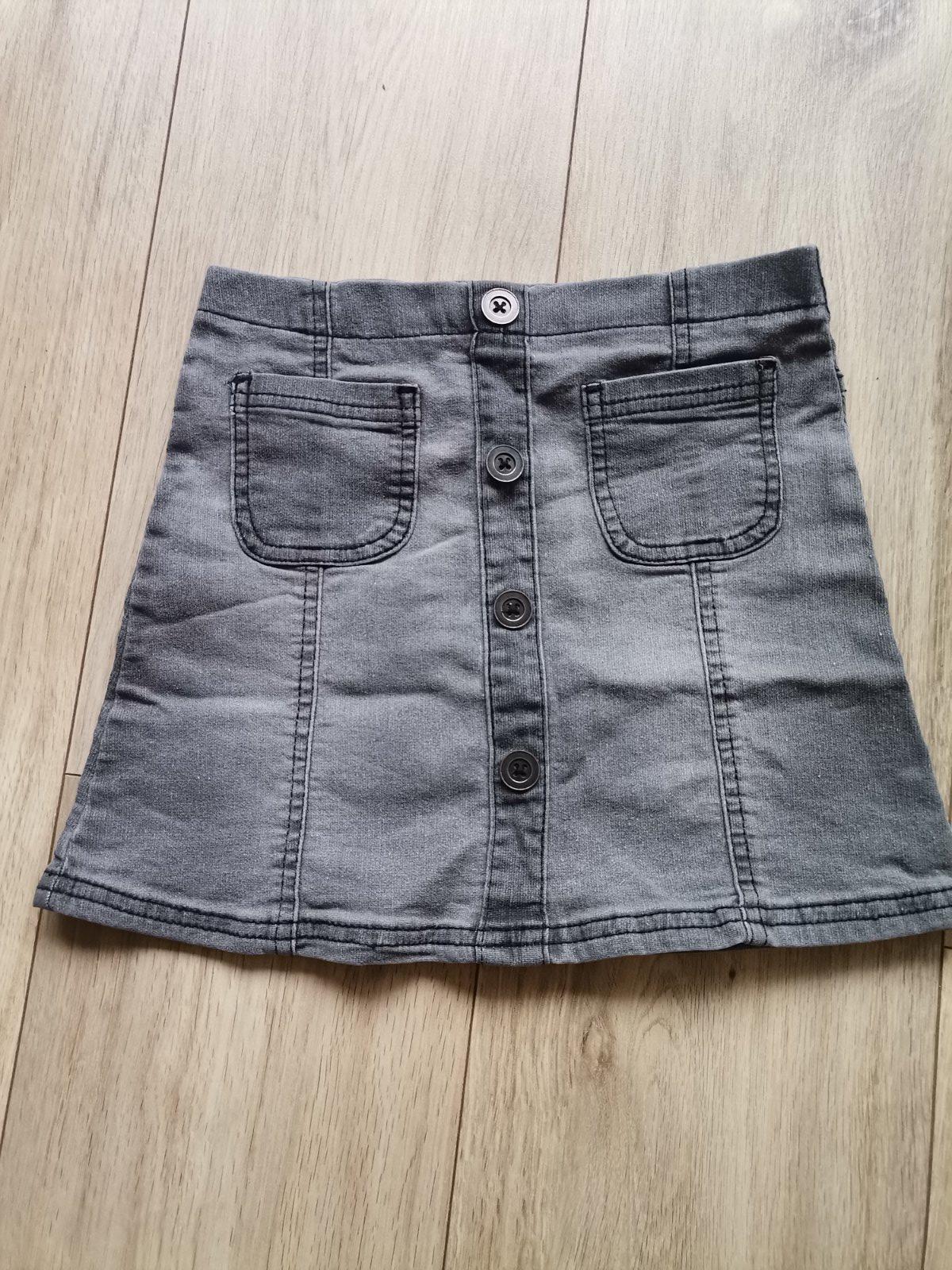 Veľmi dobrý stav! Dievčenská kombinovaná sukňa:vpredu hrubá bavlna,vzadu rifľovina. Regulovatený pás na gumu. Zapínanie na boku na zips. Má klokanie vrecko. Jemne elastická. Materiál 76%bavlna,22%p...