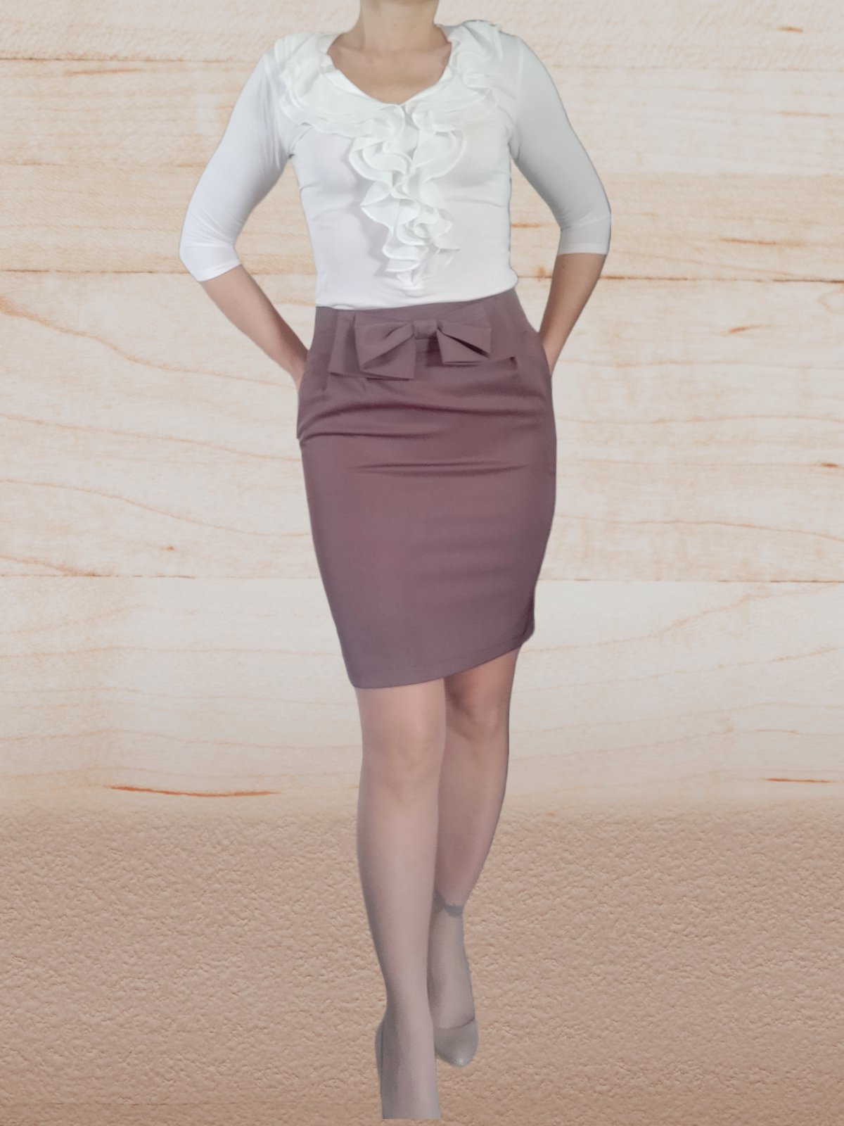 Predám novú puzdrovú biznis sukňu, vhodná do práce i na rôzne slávnostné udalosti. V strede mašľa, zapínanie na zips, vzadu rozparok. Kvalitné prepracovanie. Veľkosť: 36, Pás 72cm, Boky 90cm, dĺžka 53cm. Farba: