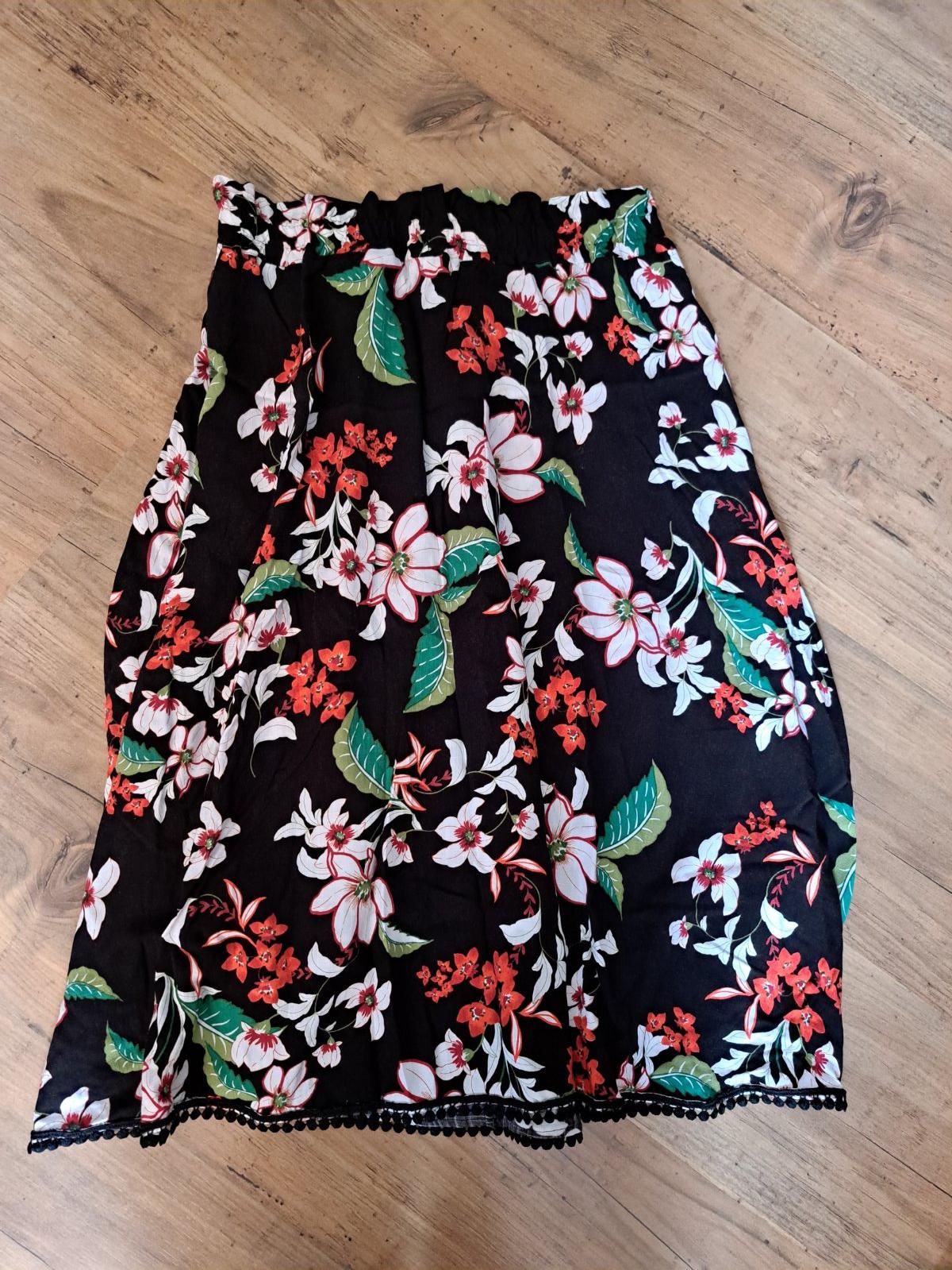 Nádherná sukňa ,skoro vôbec nekrčivý materiál ,ne niektorých miestach, povolený šev, nič natrhnuté,úzasná na horúce letné dni! Je čierna ,mobil mi nejak zle odfotil farbu!