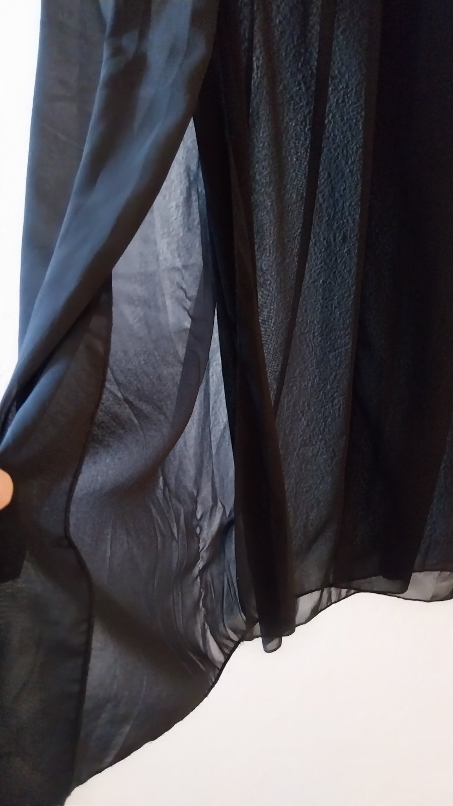 Šifónová čierna prekladaná letná sukňa. Je podšitá cca do pol stehien. Krásna na leto, aj ako slávnostná. Dá sa kombinovať s vrškom a získate letné šaty - vršok odfotený a je v ďalšom inzeráte.