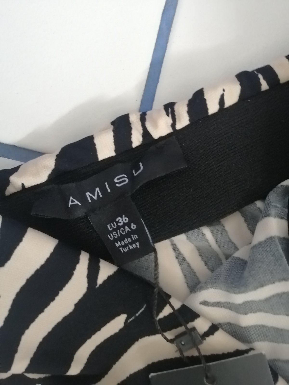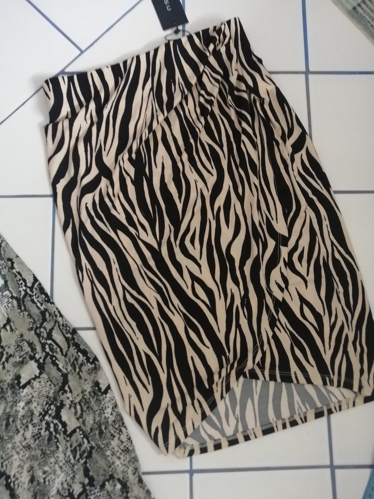 Teraz trend aj vzor aj strih. Nedá sa dombe nafotiť strih je ako zavinovacie a na jednej strane ma jemne naberanie. V páse guma a aj materiál má elastan tak pekne sadne. Nenosena. Pekný kusok