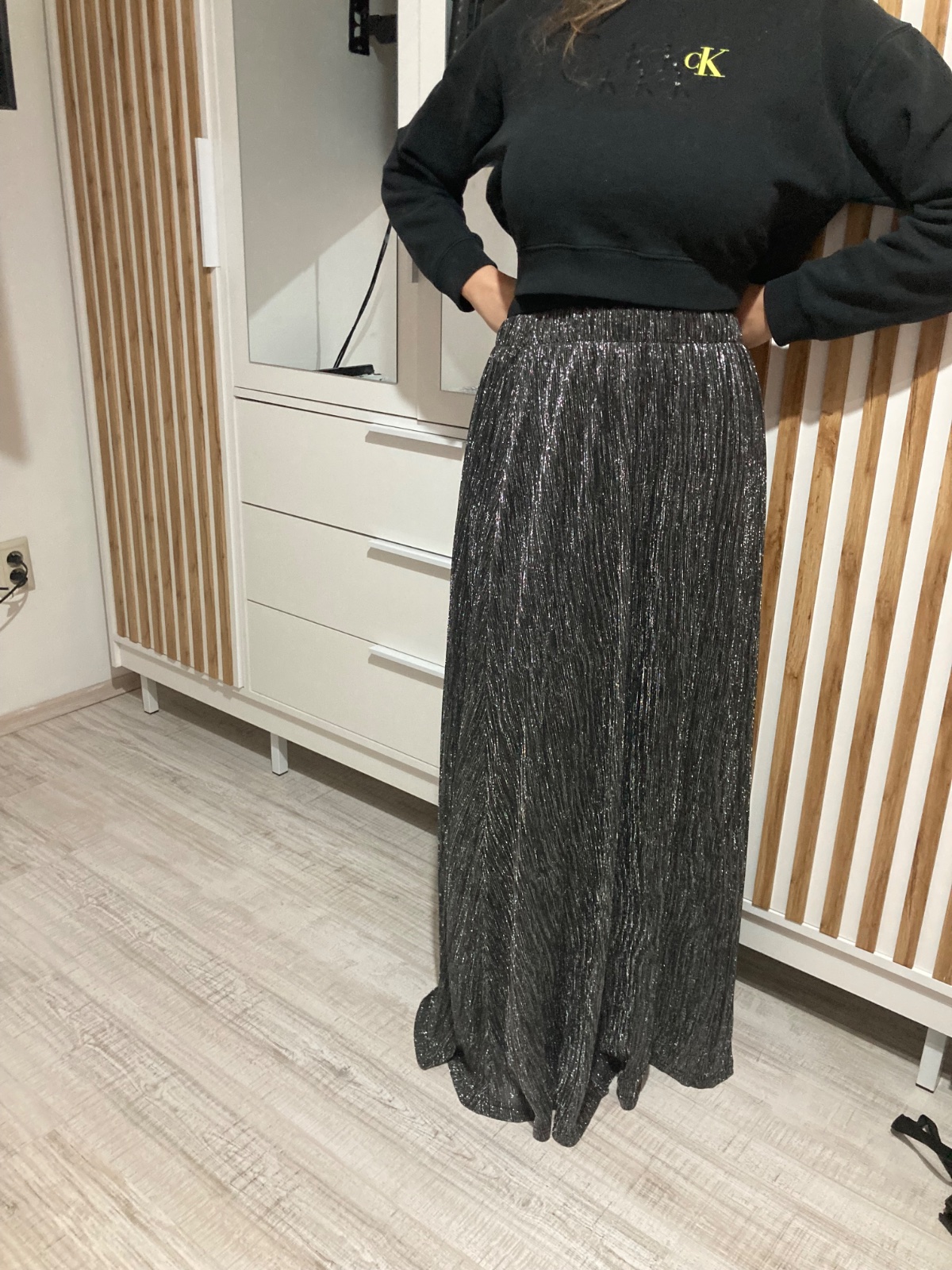 Čierna spoločenská sukňa, trblietava, na výšku okolo 170cm podľa opatkov , šitá u krajcirky