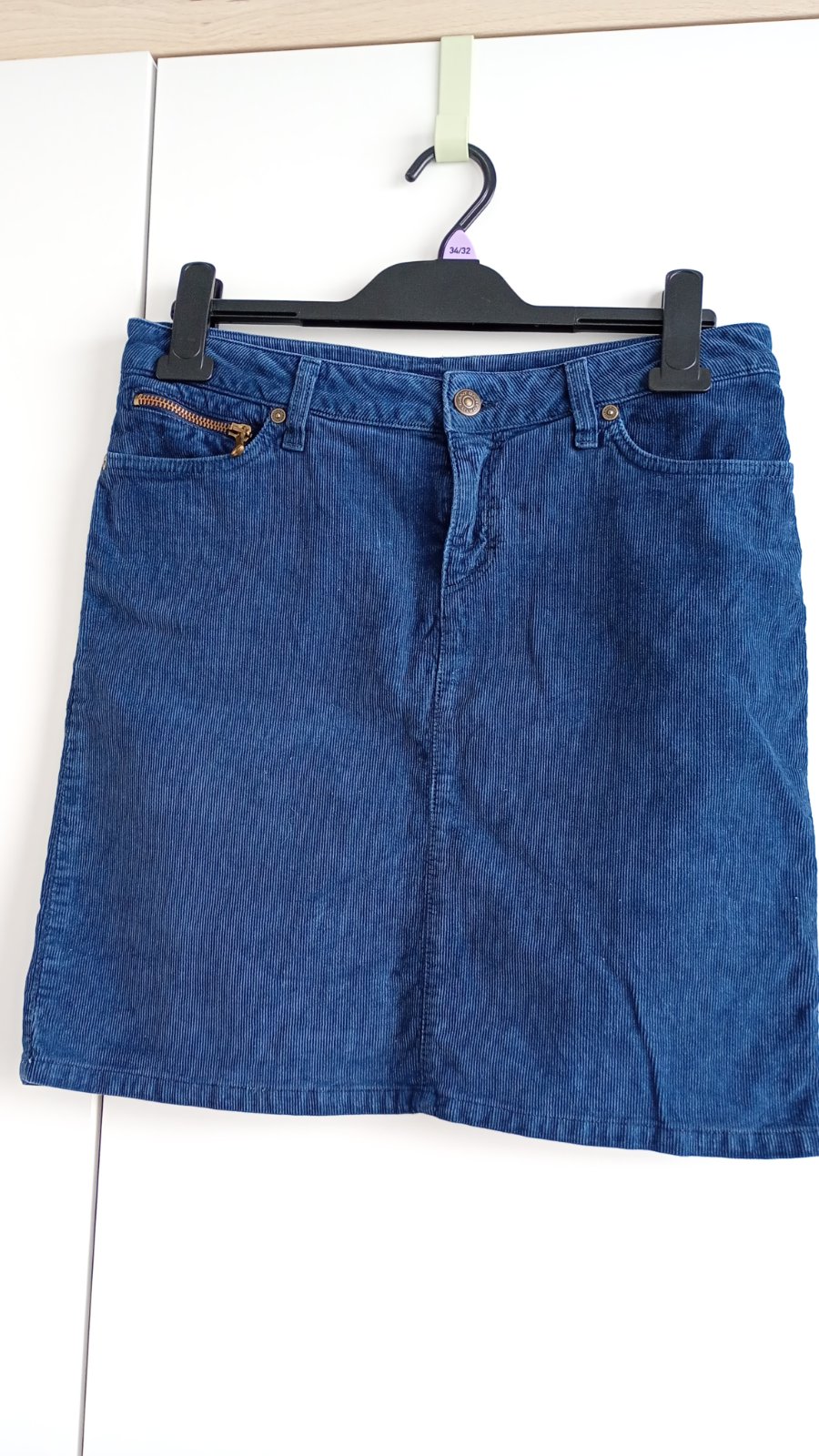 Rifľová minisukňa, veľkosť 36 Materiál: 99% bavlna, 1% spandex OP: 76cm, dľžka: 32cm Na leme vrecka vpredu na pravej strane chýba malá ozdobná cvočka. Pri nosení to nevadí :-)