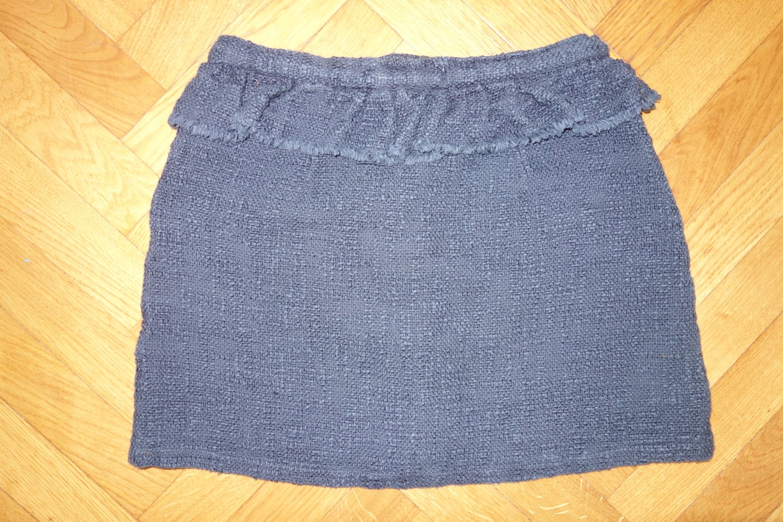 Výborný stav. Sukňa so zapínaním vpredu na veľké výrazné cvoky, okolo pása volán a vpredu dve vrecká. Štýlový kúsok. 100% bavlna.