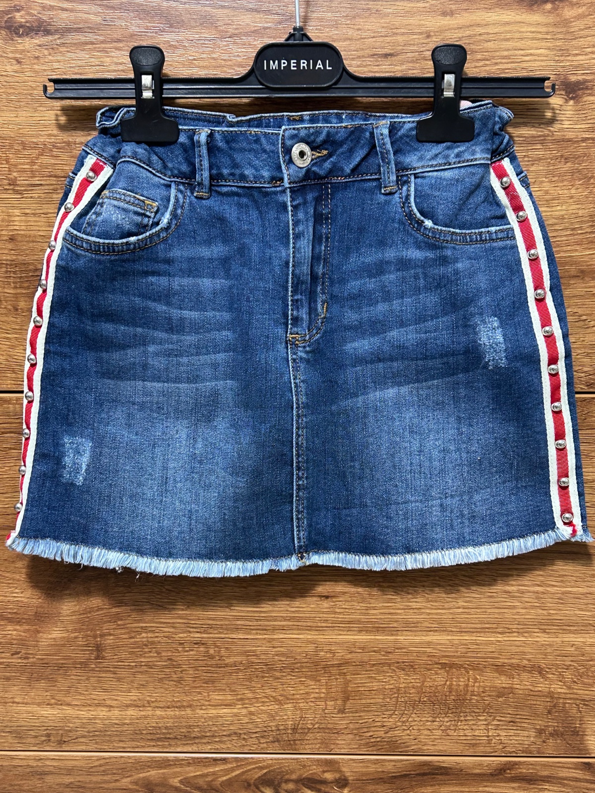 Riflova sukna s vysivkou, velkost 140- 152 cm.