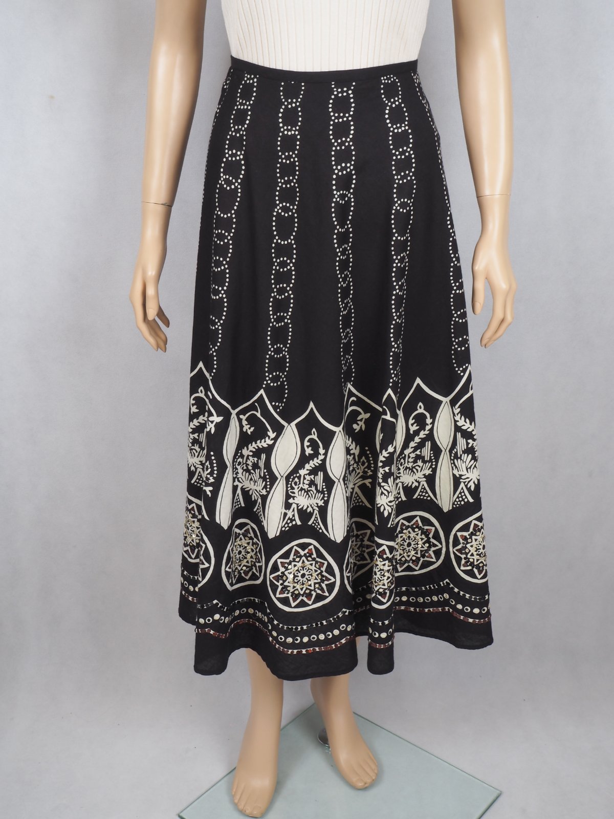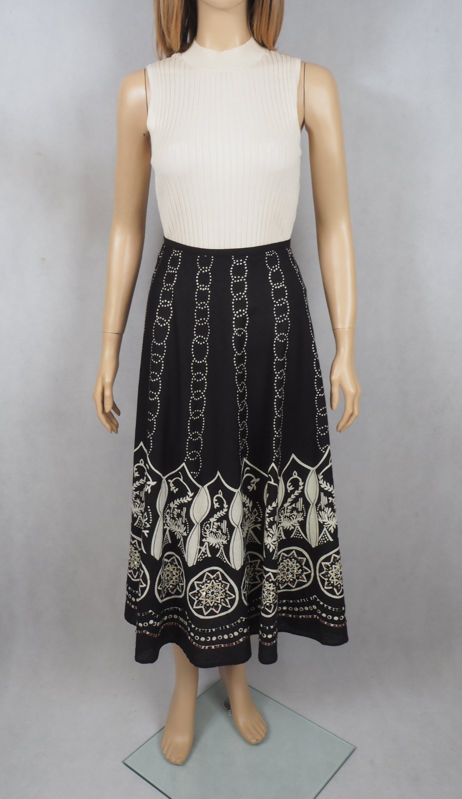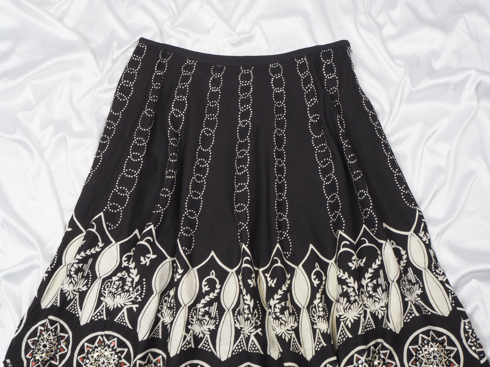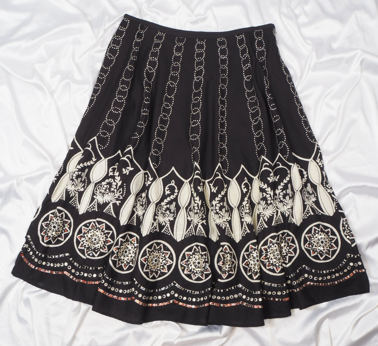 Kvalitná letná sukňa tmavohnedej farby s nádhernou potlačou, bočný zips, materiál