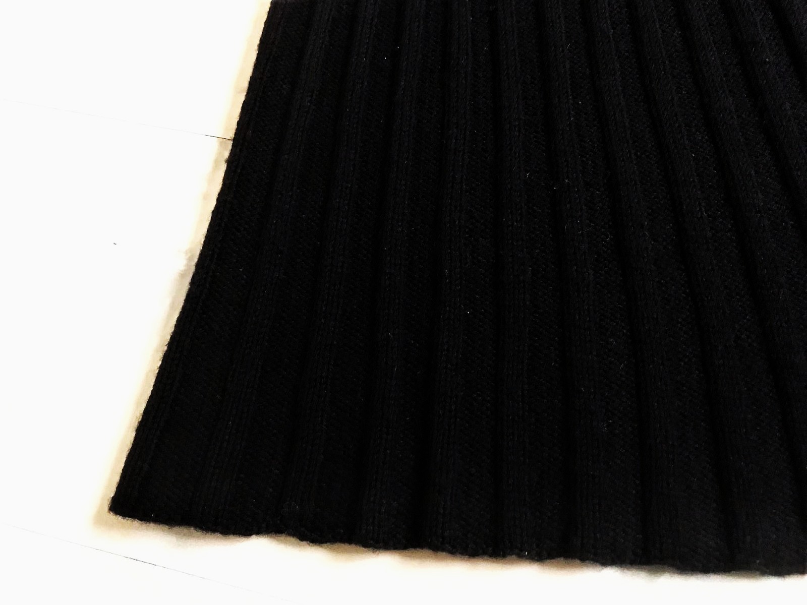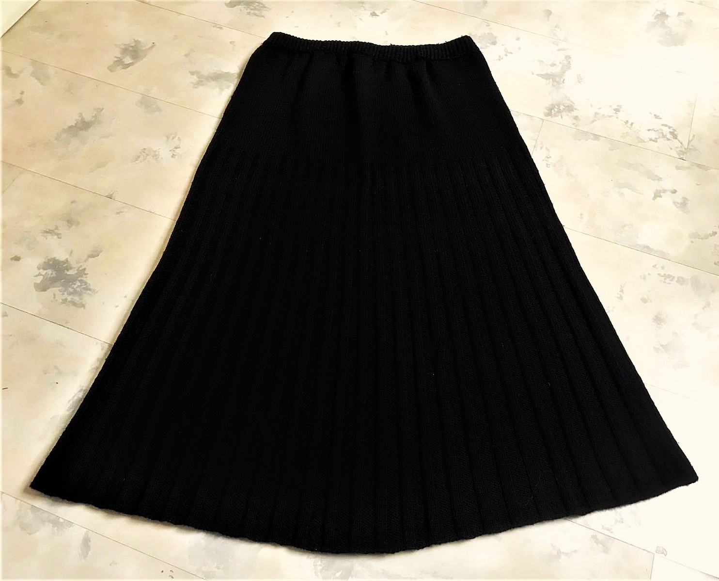 teplá vlnená pletená sukňa,hladké sedlo a vrúbkovaný spodok na spôsob plisé,pekne padá,nepodšitá, v páse gumička - dá sa upraviť,veľmi moderná a nezvyčajná,dlžka celkom = 80 cm,z toho hladké sedlo = 28 cm,pás v kľude bez natiahnutia = 40 x 2 cm,po natiahnutí max.50 x 2 cm