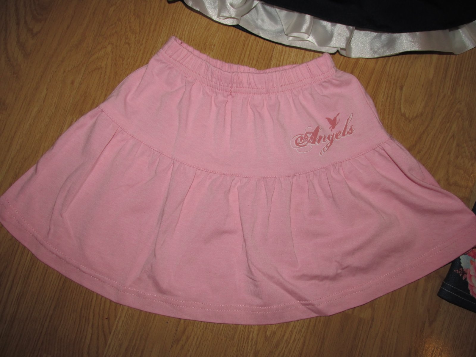 Suknička v páse na gumu, v hornej časti nápis Angels, ktorý sa mierne trbliece. Sukňa má mimi žmolky. Ružová suknička je v páse 20,5 cm x 2, celková dĺžka je 27,5 cm.