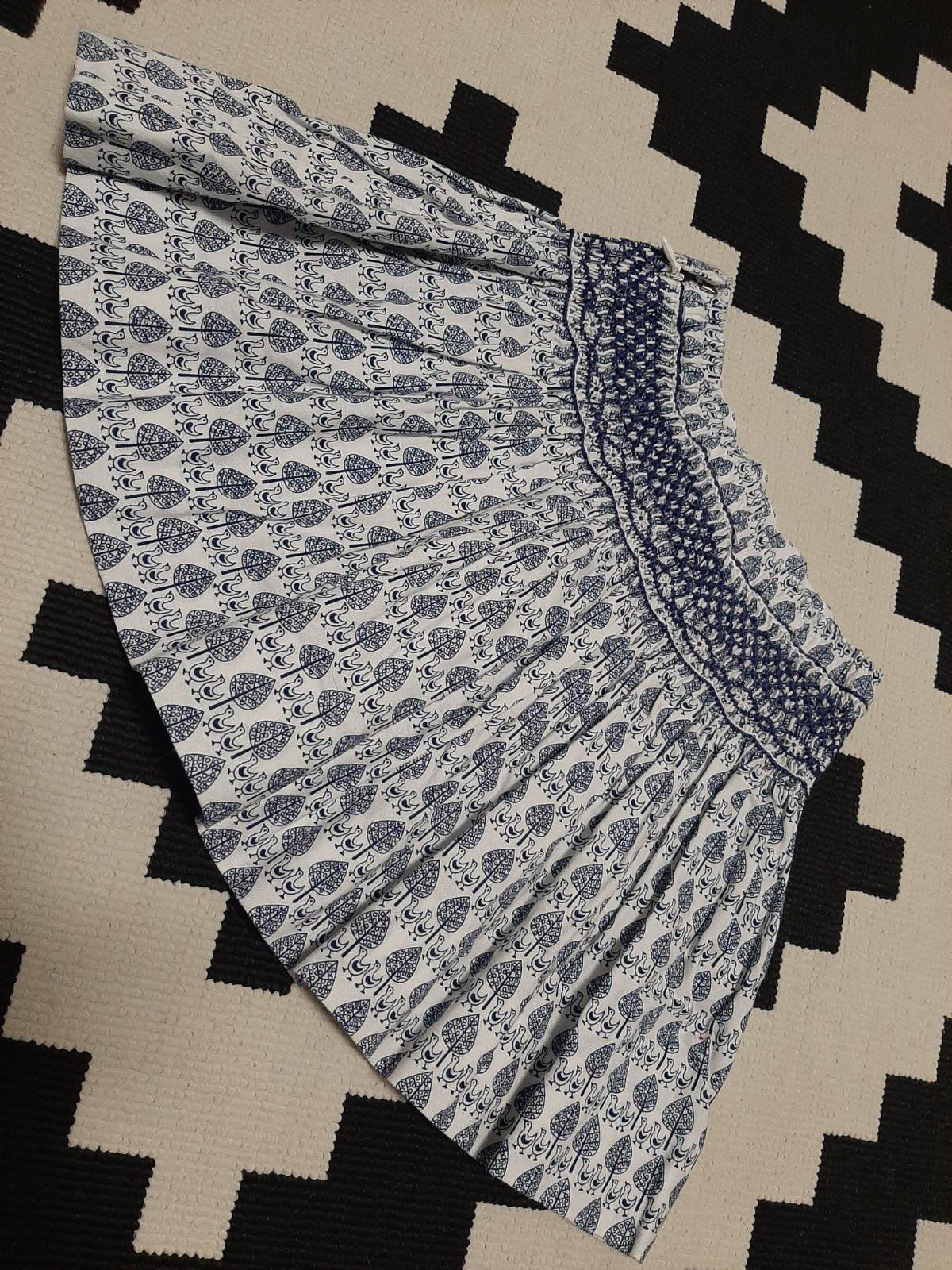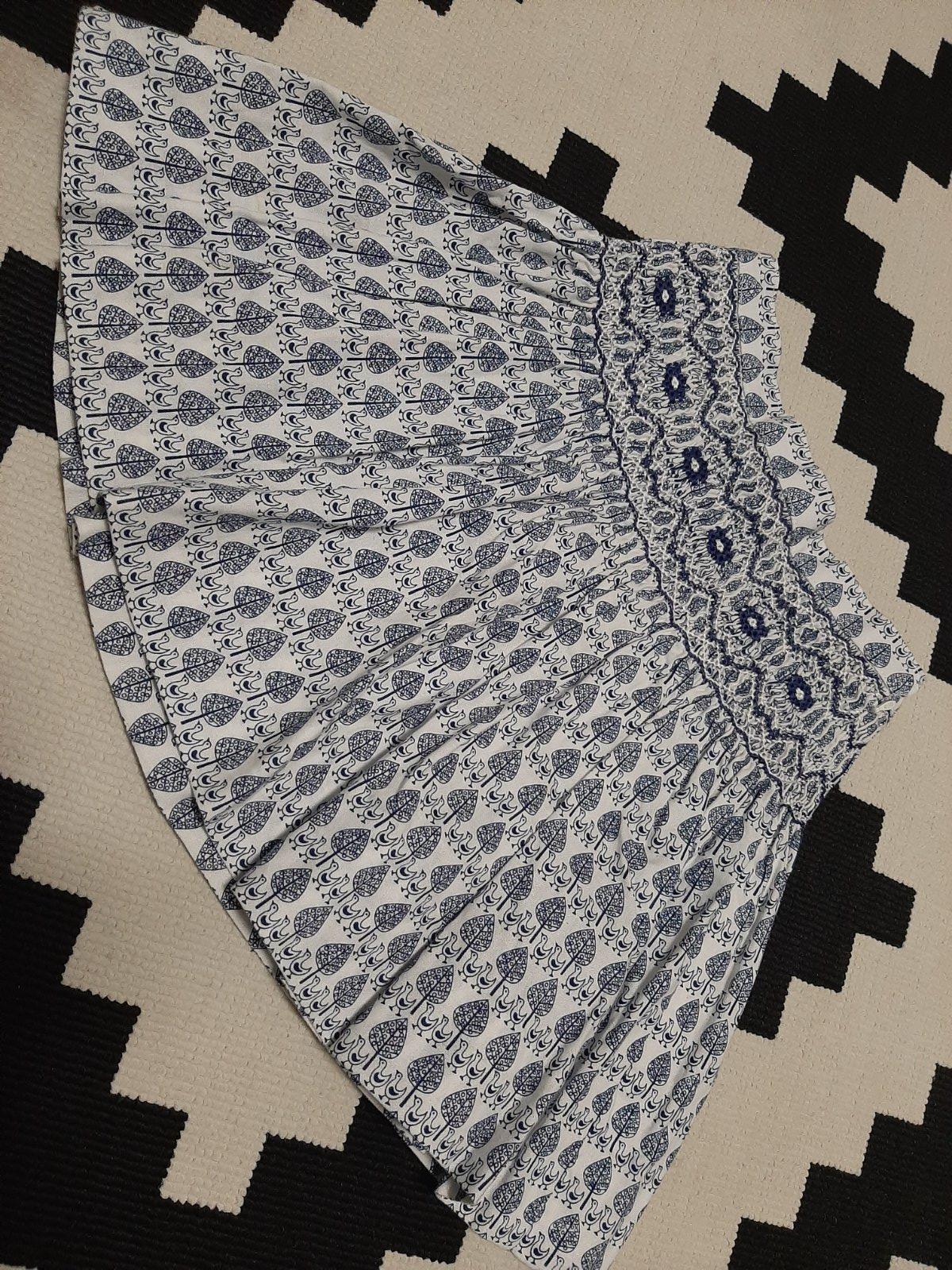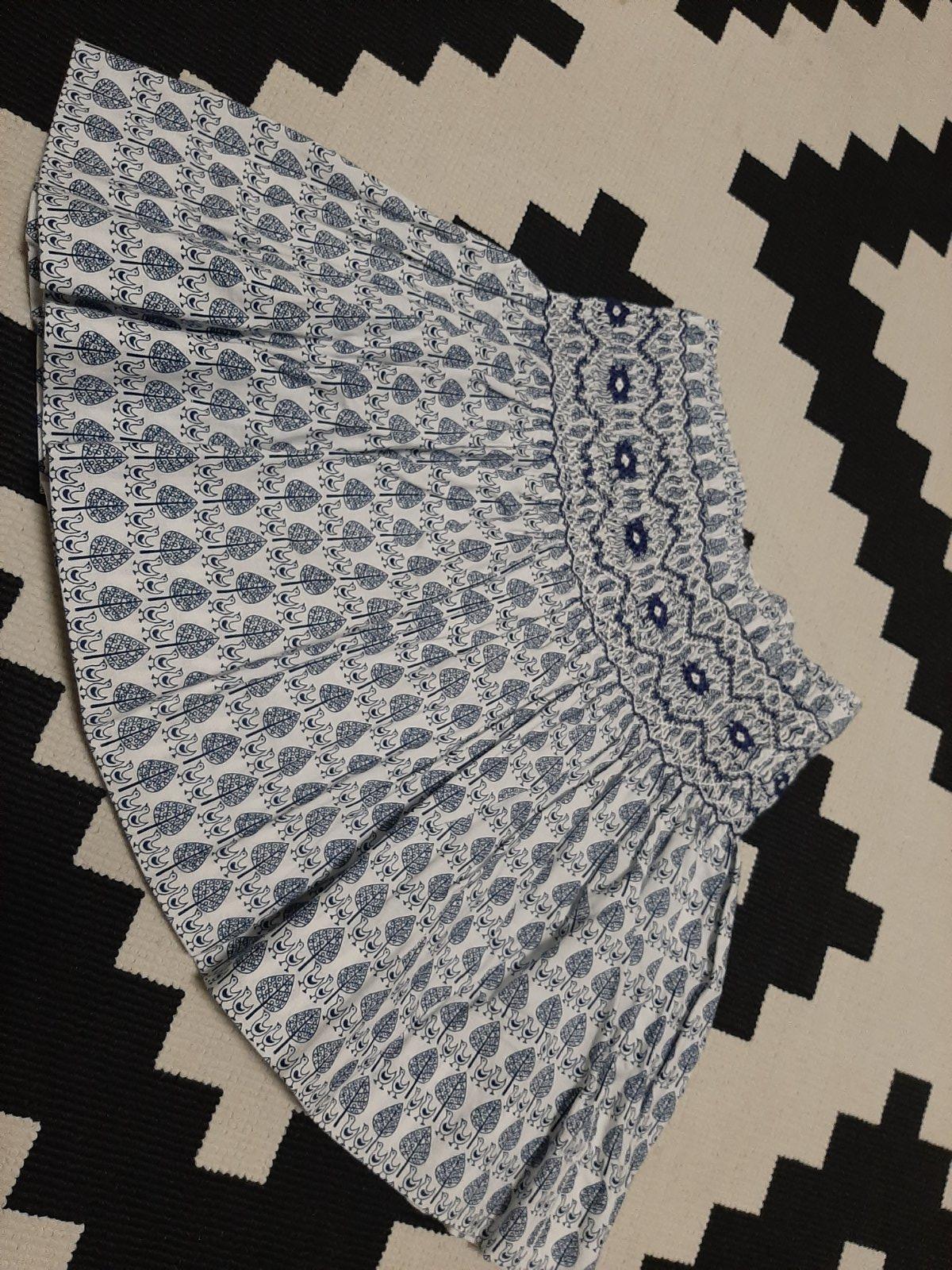 prekrásna bohatoriasená ručne šitá suknička z thajska, v pase vyšívaná, pripomína krojovanú modrotlac, zapínanie naboku na zips, v. S a M, zodpovedá v. 1-3 a 3-5r., dostali sme ich už malé :( cena za kus 15eur, pri odbere spolu obyč pošta grátis, cena je pevná, ďakujem.