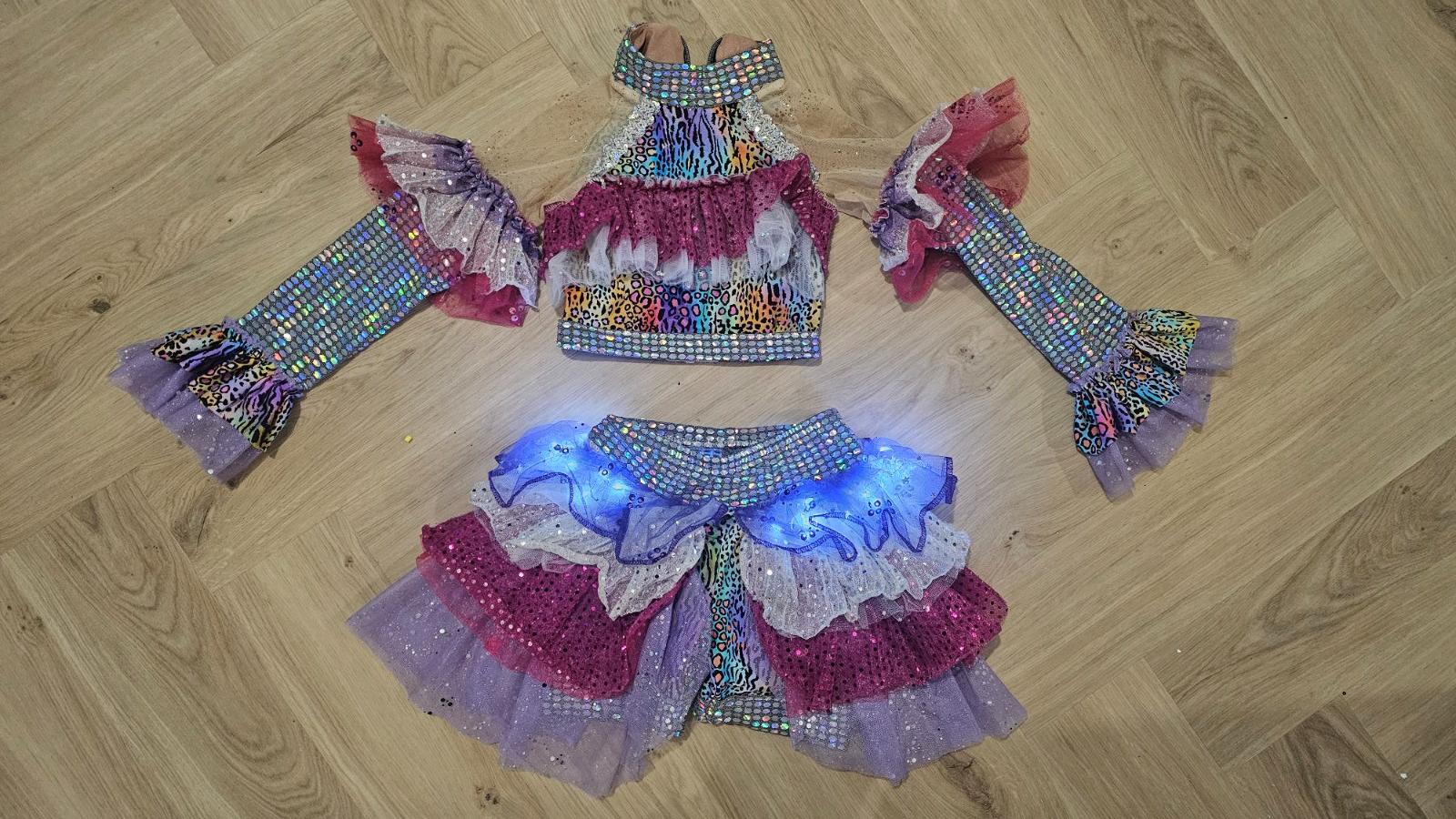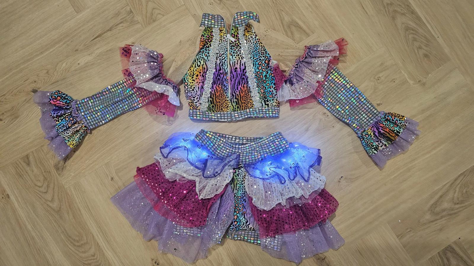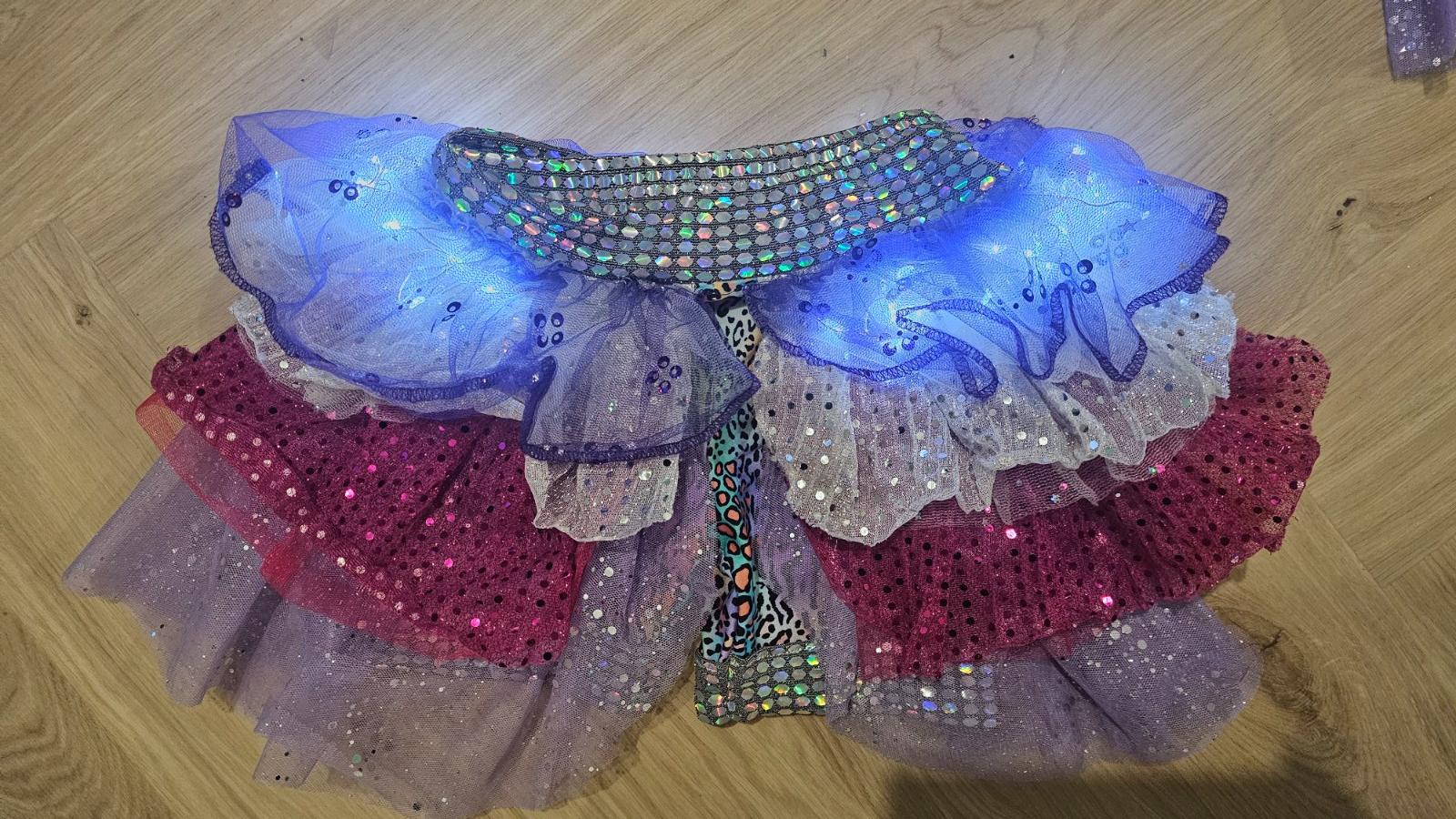 Pozostáva z dvoch dielov, krátky TOP s dlhým rukávom a NOHAVICO-SUKŇA so zapracovanými svetielkami.