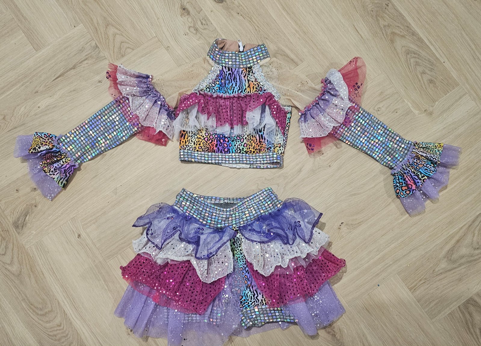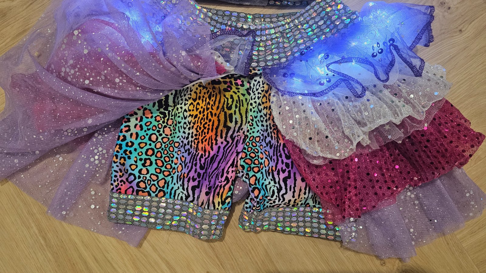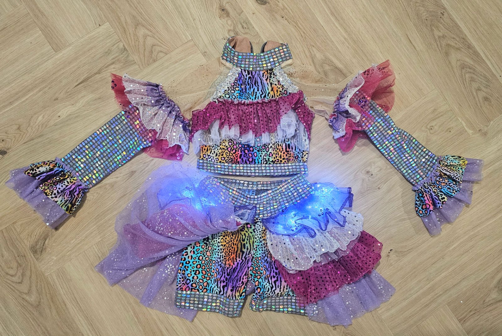 Pozostáva z dvoch dielov, krátky TOP s dlhým rukávom a NOHAVICO-SUKŇA so zapracovanými svetielkami.