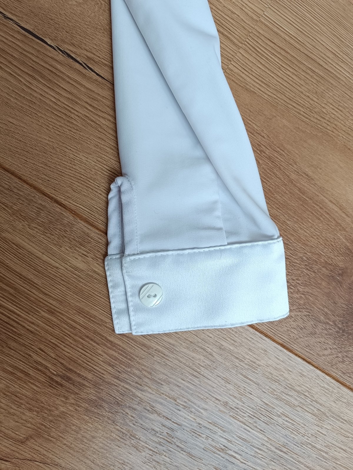 Body su vyrobene z padavej latky v bielej farbe, so satenovym golierom a manzetami. Body maju zapinanie po celej dlzke na zips.