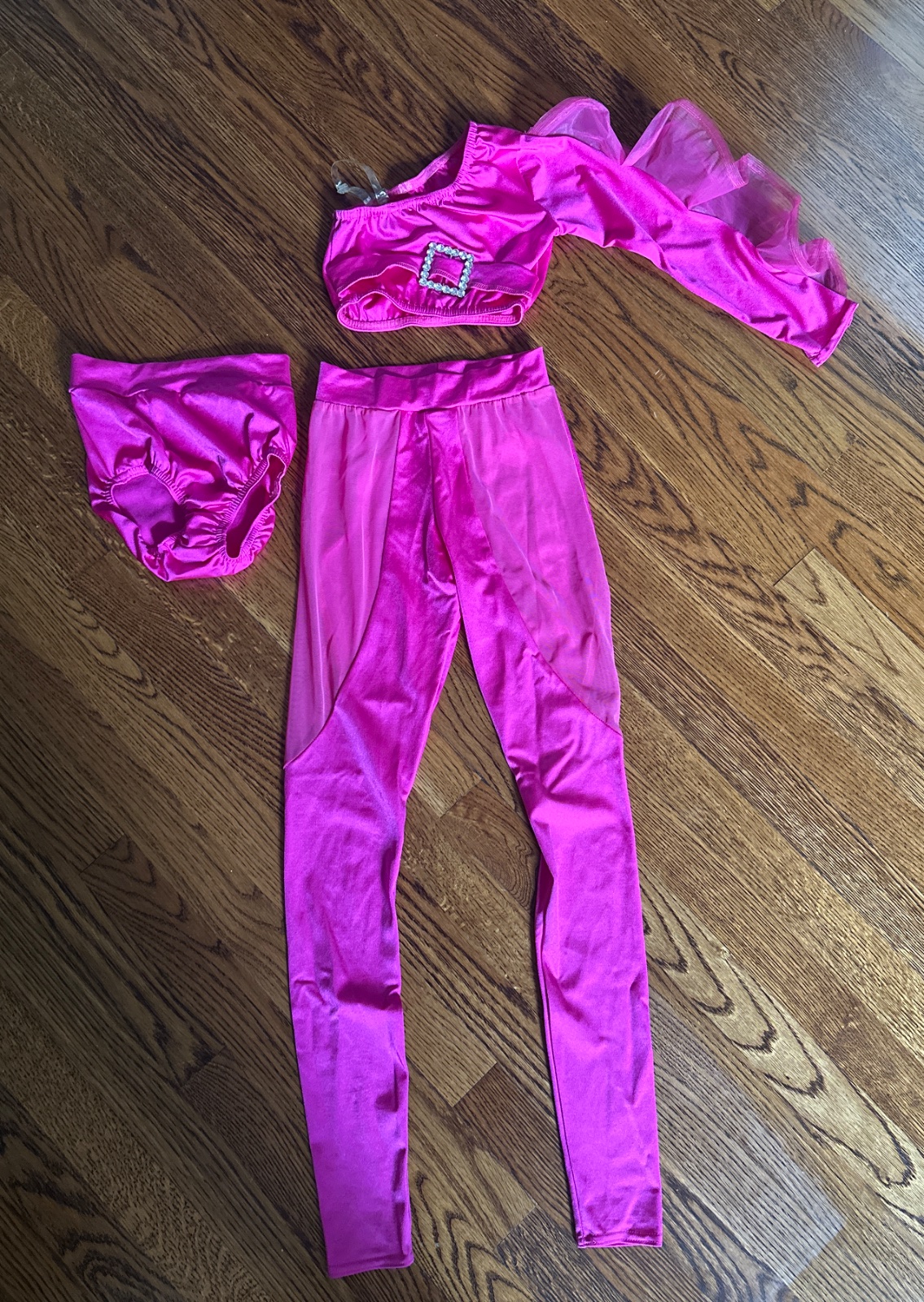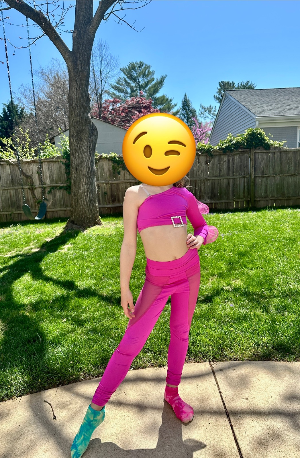 Predám tanečný kostým, určený na výšku 122-134cm. Pozostáva z dvoch dielov, krátky TOP s dlhým rukávom a NOHAVICO-SUKŇA so zapracovanými svetielkami. Top stav.