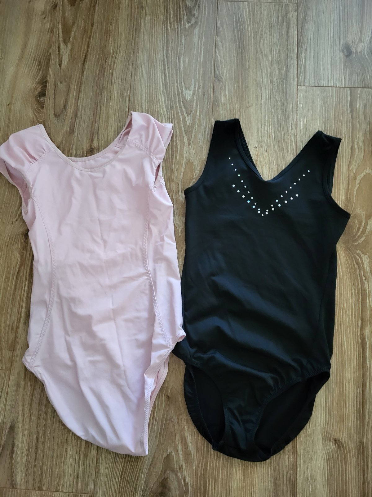 Predám bodyčka. Čierne top stav, ružové zašívané na ramene. Veľkostne poslúžia 134-146. Predám spolu.
