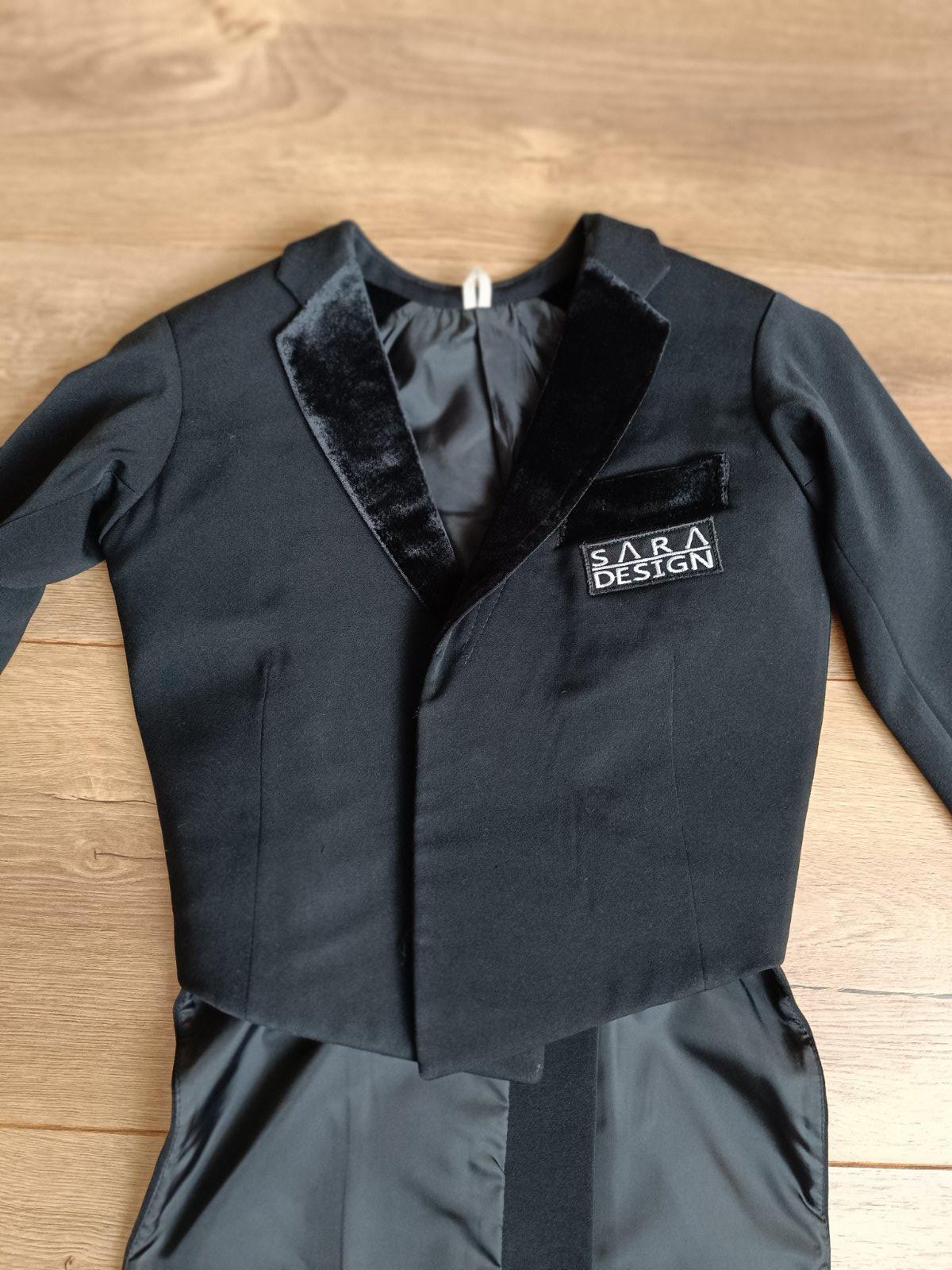 Ponukam par krat pouzity tanecny frak s nohavicami pre juniora, sity na mieru, znacka Sara design, velkost cca 164.