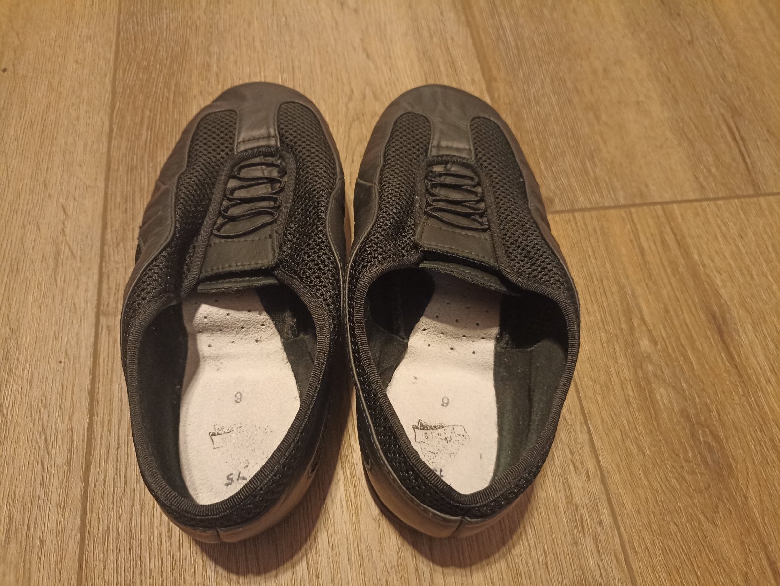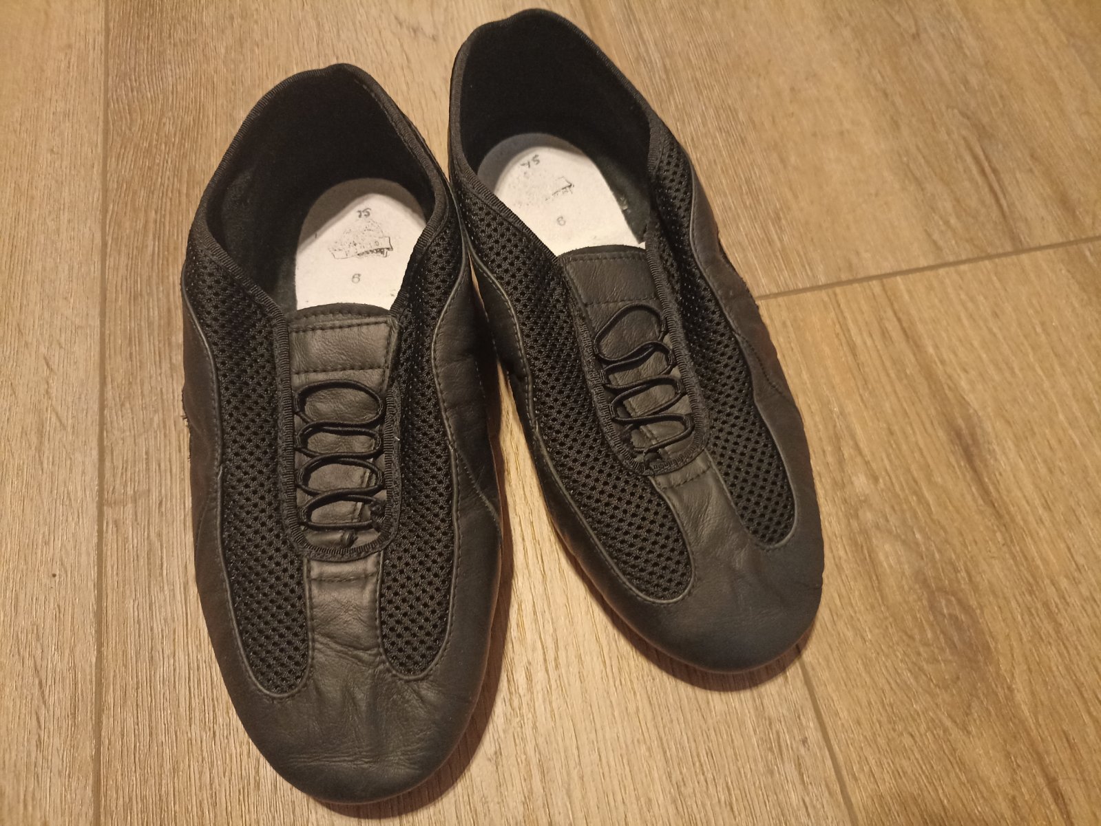 Predám tanečné topánky.Nosene pár krát.Kúpené nove cez Dancemaster stali 66Eur. Vnútorná dĺžka 27.Čiže podľa mňa tak 41 velkost, aj keď na krabici je 42,5.