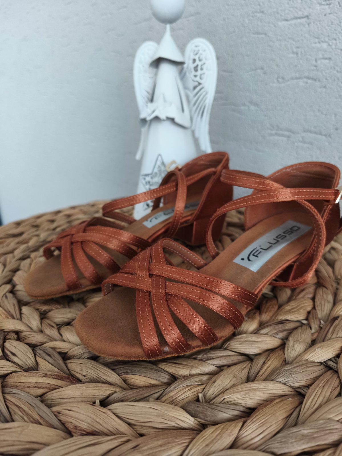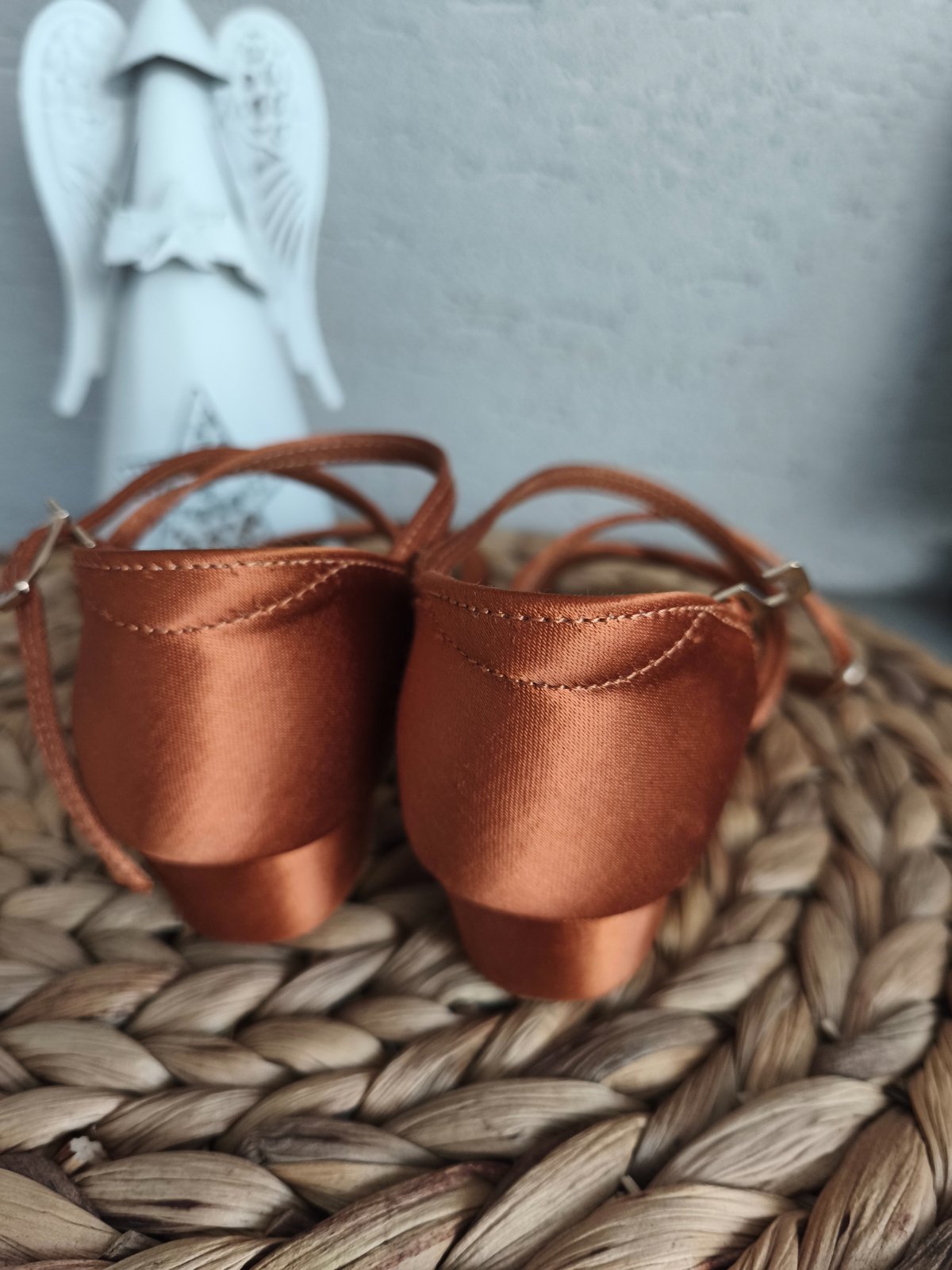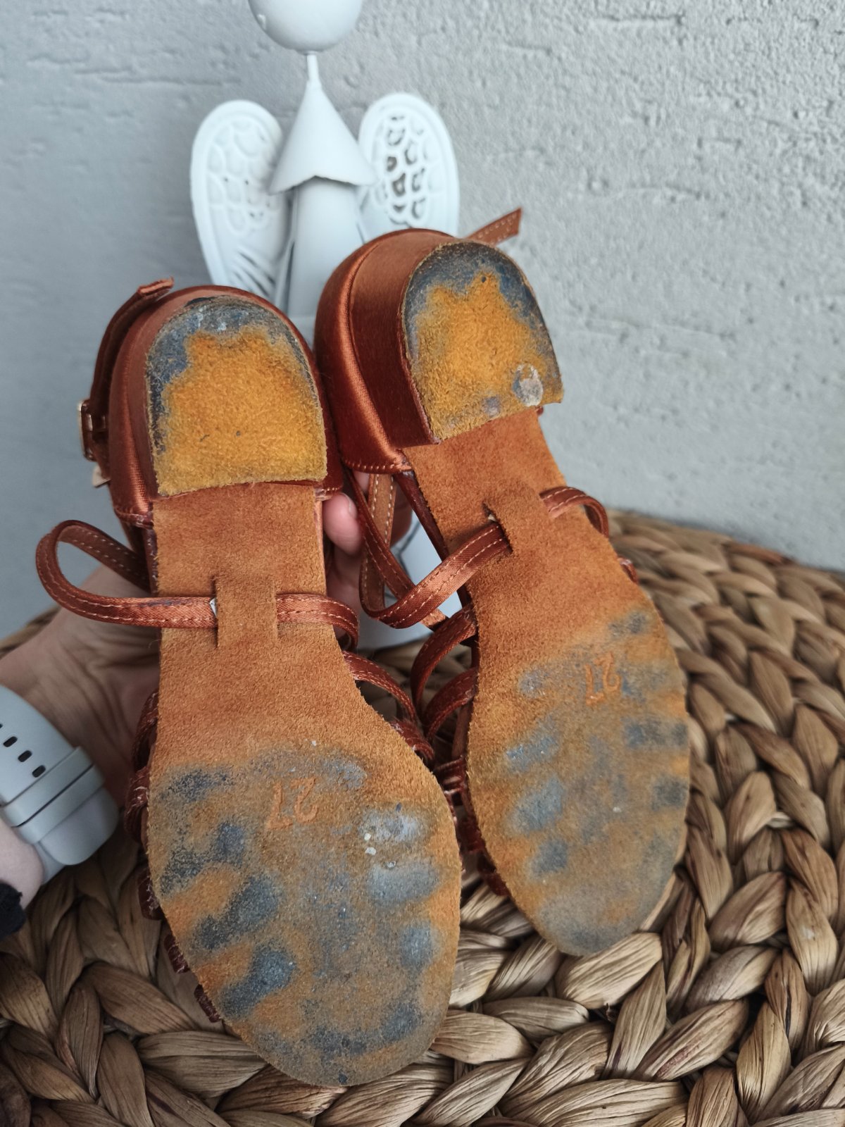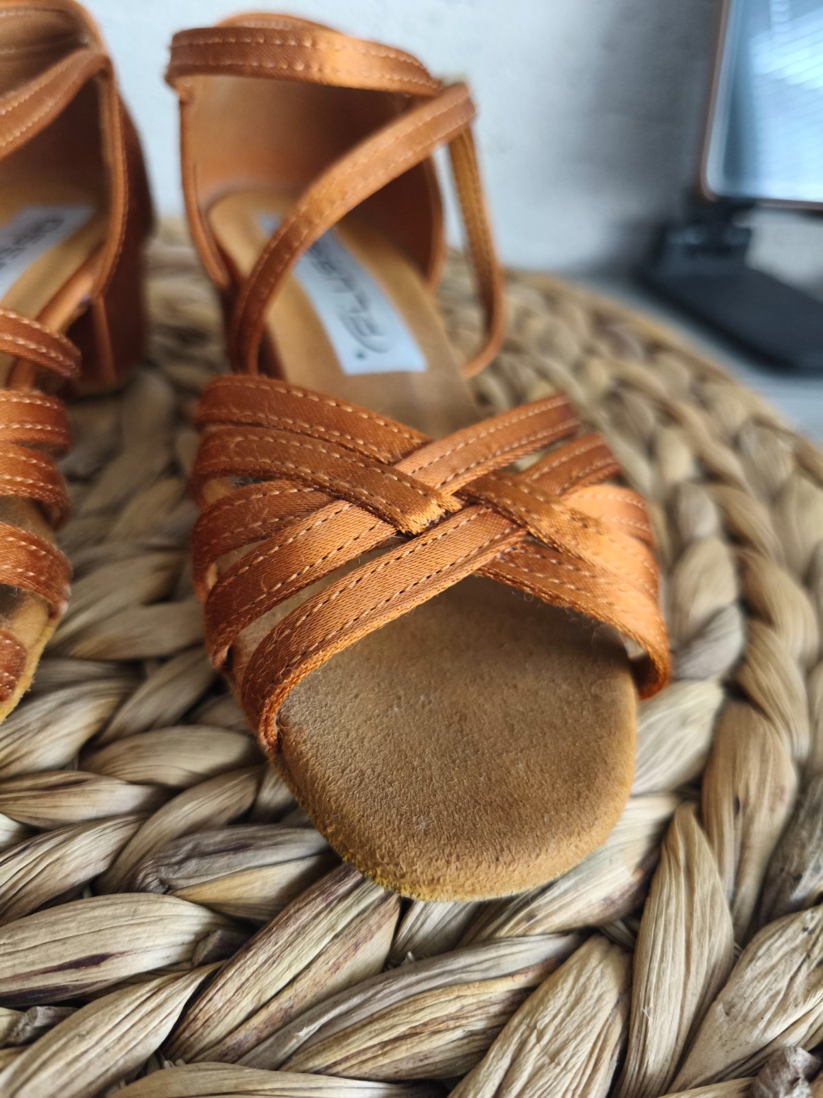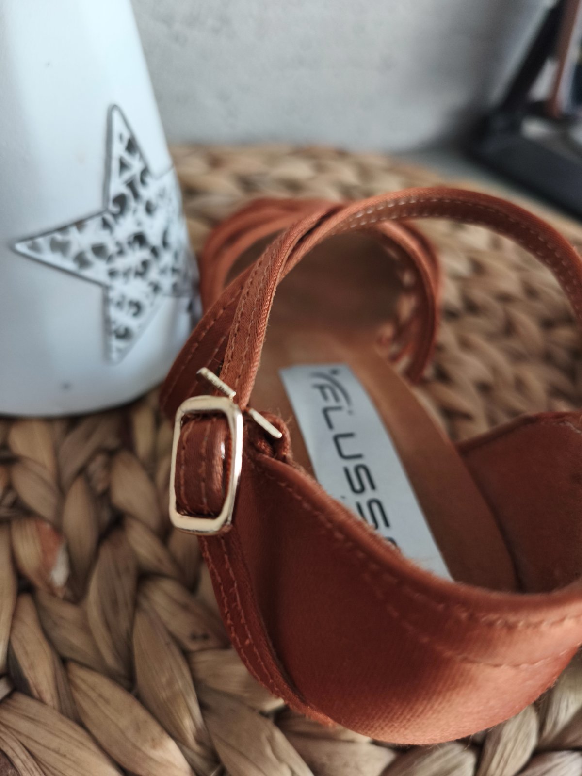 Predám nádherné sandálky na spoločenský tanec hnedej farby s nádhernou kamienkovou sponou v peknom stave. Farba: hnedá. Veľkosť: 37 1/2 Vnútorná dĺžka: 23,5 cm Šírka: 7,5 cm Výška opätku: 7,5 cm M...