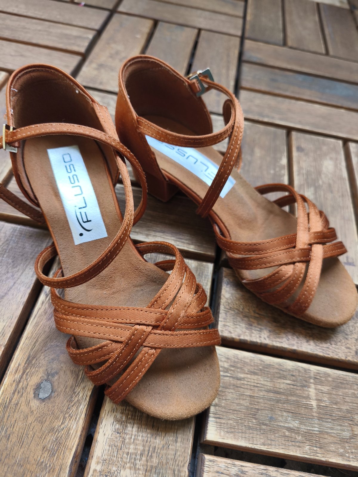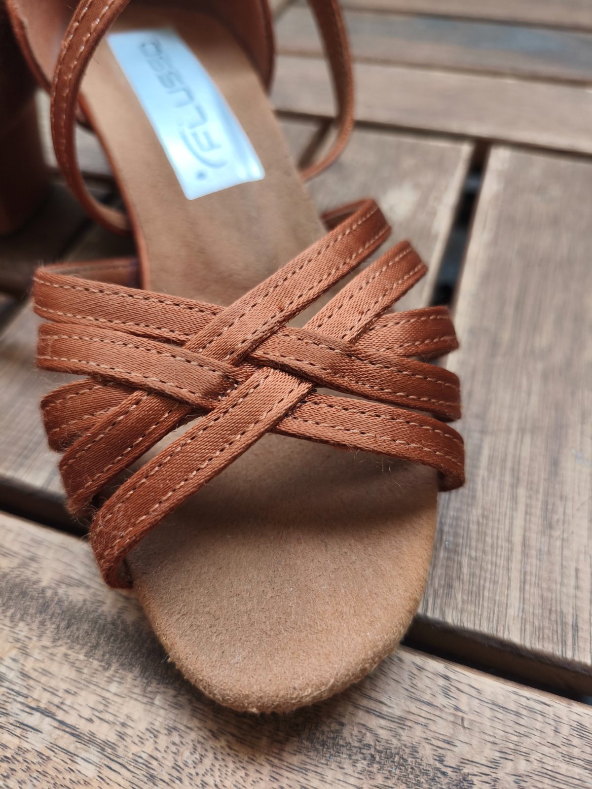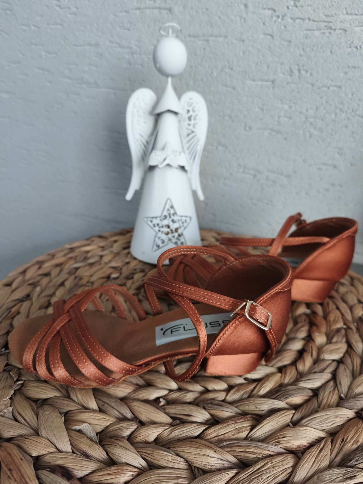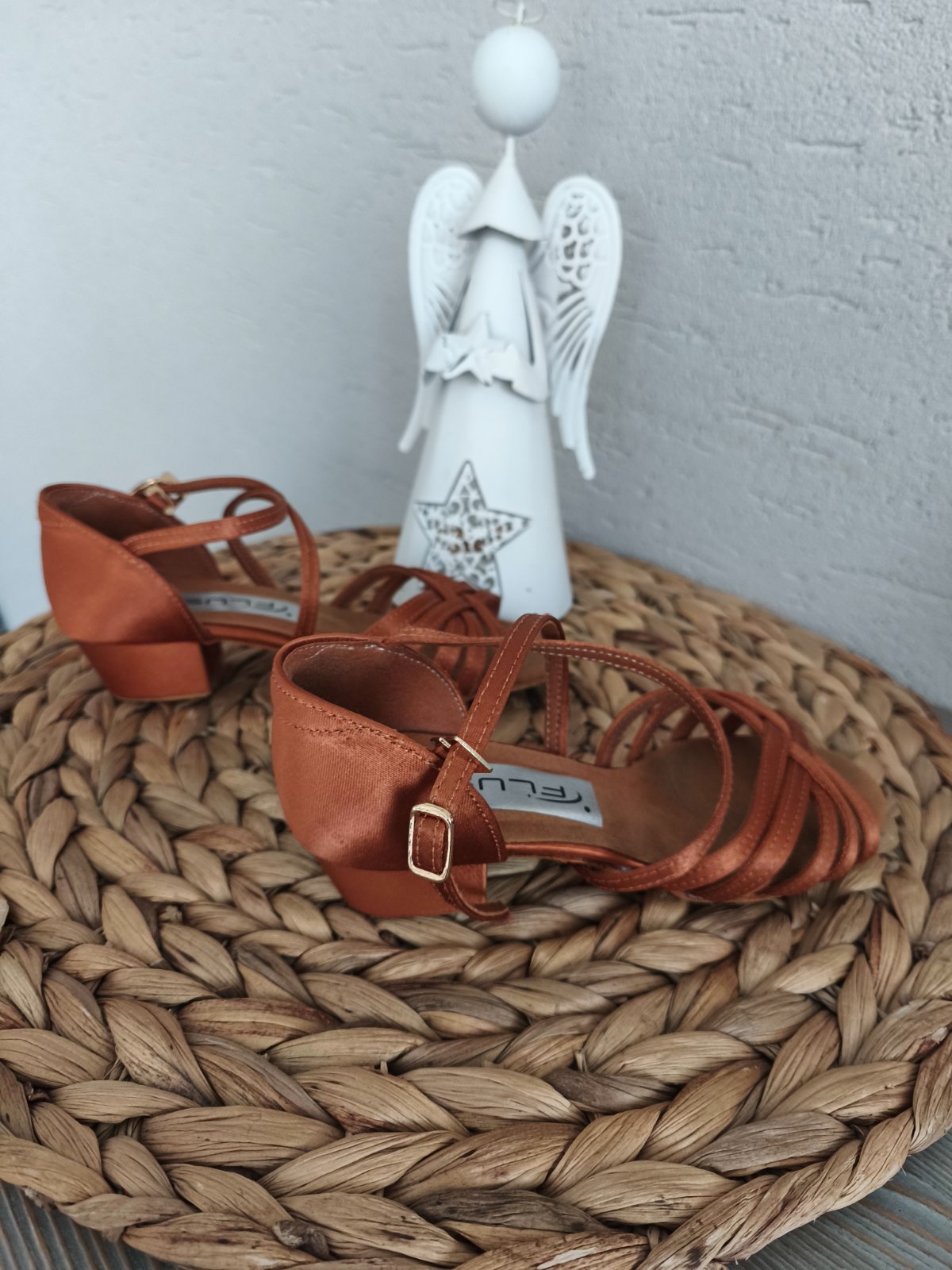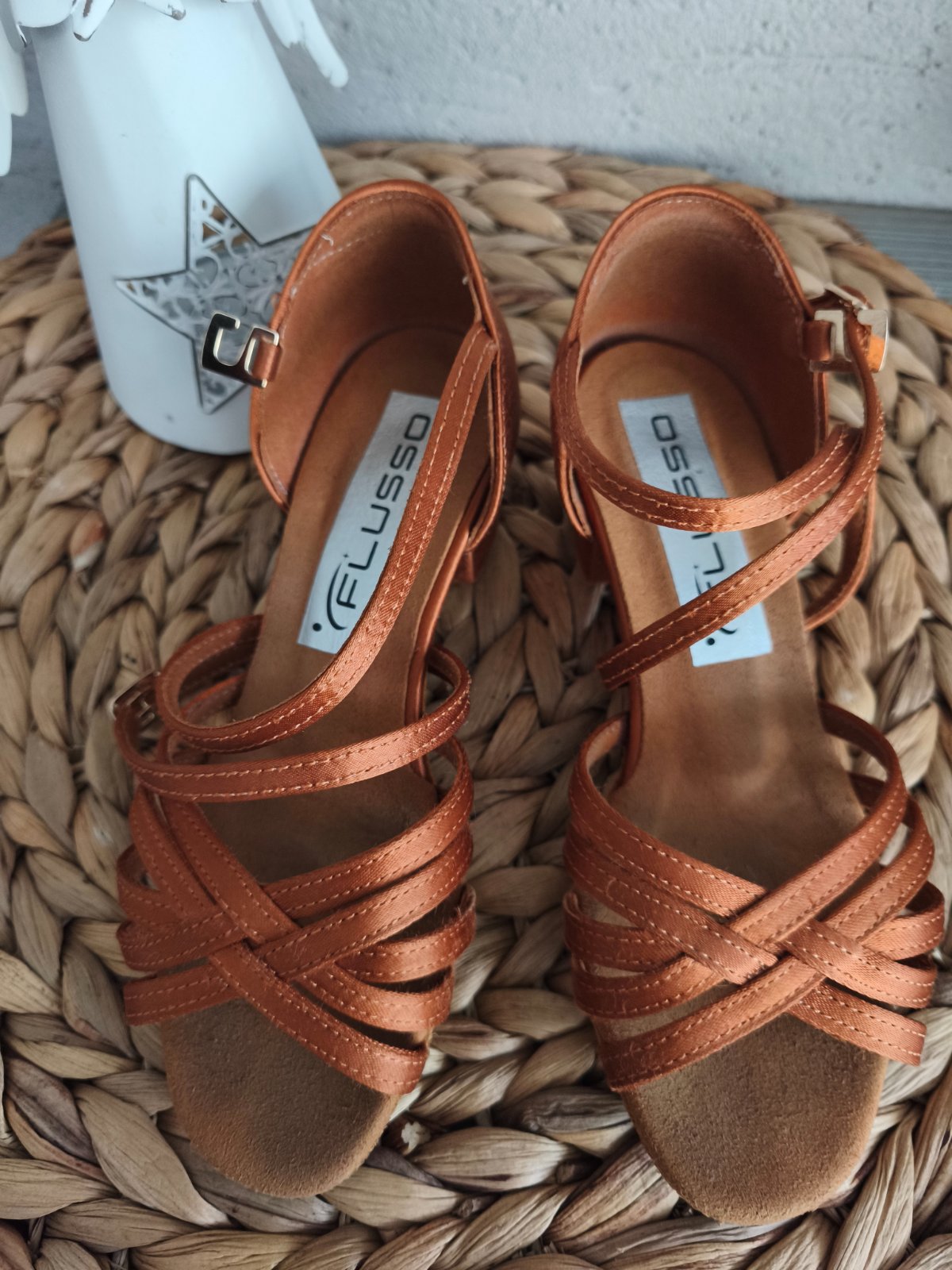 Predám nádherné sandálky na spoločenský tanec hnedej farby s nádhernou kamienkovou sponou v peknom stave. Farba: hnedá. Veľkosť: 37 1/2 Vnútorná dĺžka: 23,5 cm Šírka: 7,5 cm Výška opätku: 7,5 cm M...