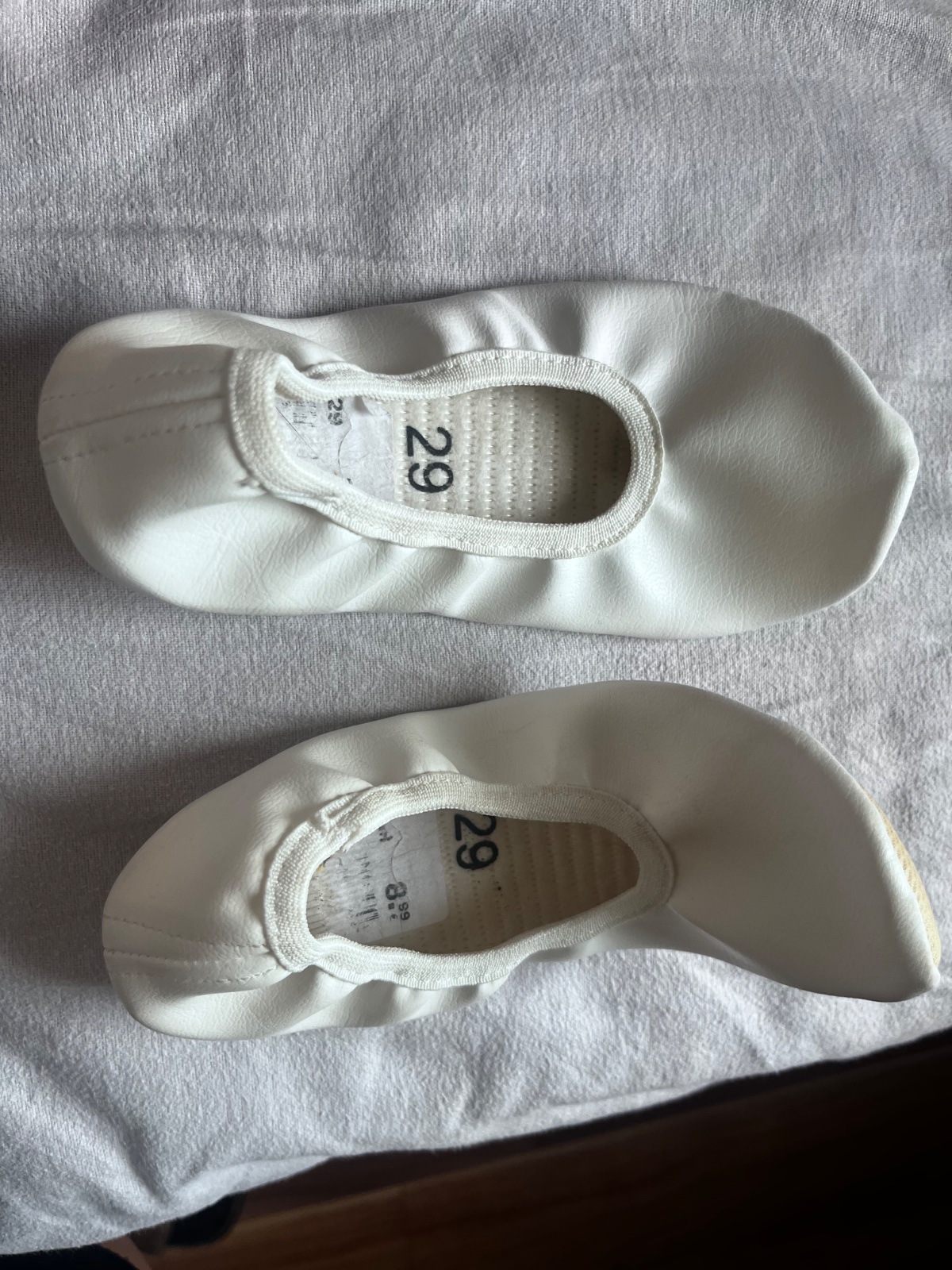 Predám na špičkách nevysuchané baleríny po dcérke. Bohužiaľ kupovali sme ich na tanečnú ale nakoniec na ňu nenastúpila tak ich nosila pár mesiacov len do hudobnej ako prezuvky. Tak nech slúžia nie...