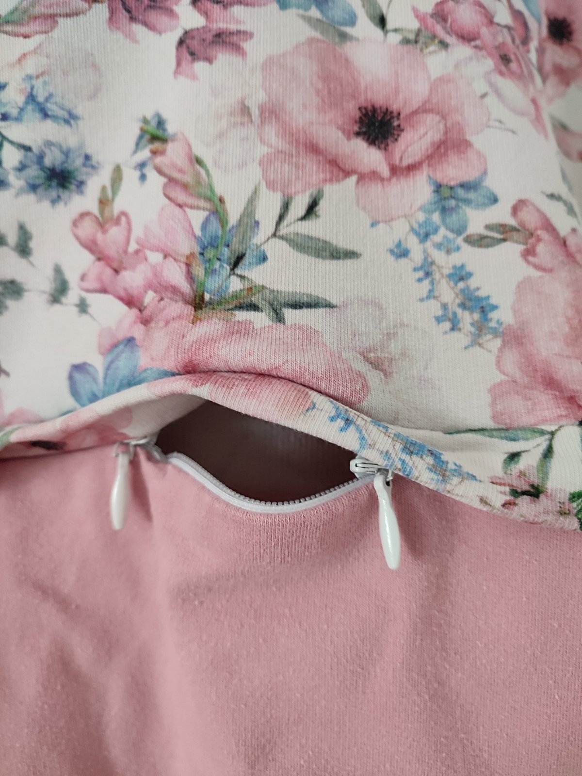 Krásna mikina na dojčenie, zn. Happymum, veľkosť S (aj XS). Diskrétne zipsy na dojčenie, praktické vrecká. Veľmi pekný nosený stav, jedine na ružovej časti vidieť trochu prací chĺpok.