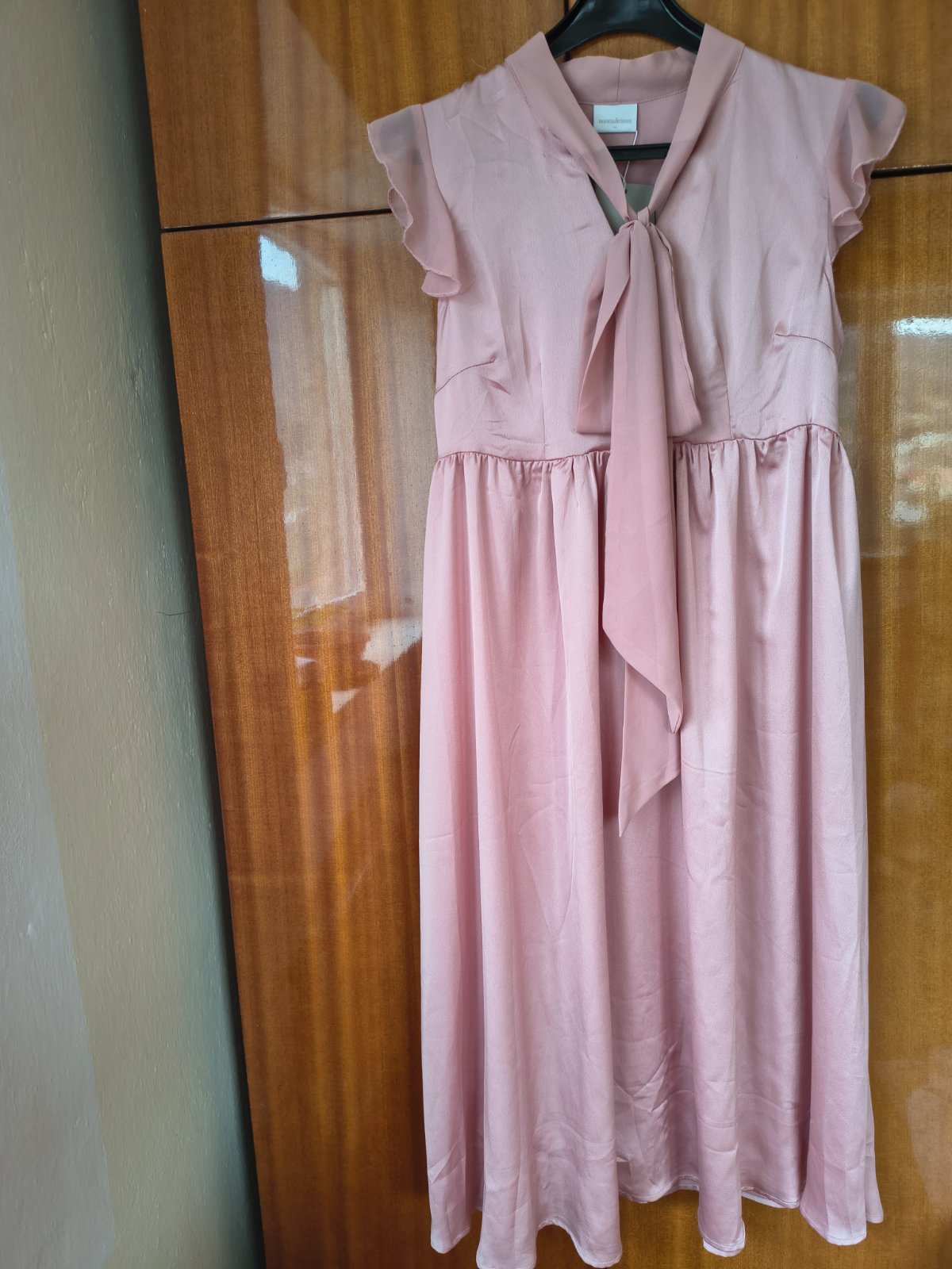 Len vyskúšané tehotenské spoločenské šaty / šaty na dojčenie značky Mamalicious. Padavý materiál, jemné, ľahunké. Na rukavoch jemné volániky. Nepoužila som ich, boli kúpené na svadbu ako hosť, svadba sa presunula a medzi tým som porodila. PC 65 eur.
