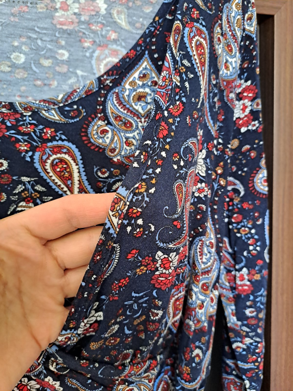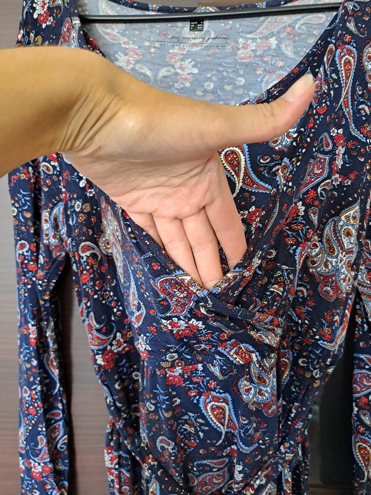 Oblecene parkrat, u mna nevyuzite. Aplikacia na hrudi umoznujuca kojenie / dojcenie. Saty su z pruzneho materialu, vedia sa prisposobit (za mna osobne su vhodne pre mamicku s plnsimi prsiami, na mne viseli). Rozmery vid foto
