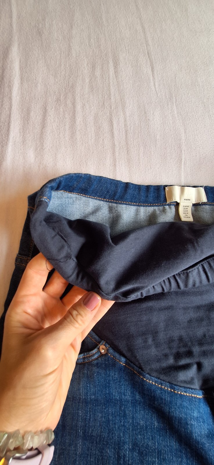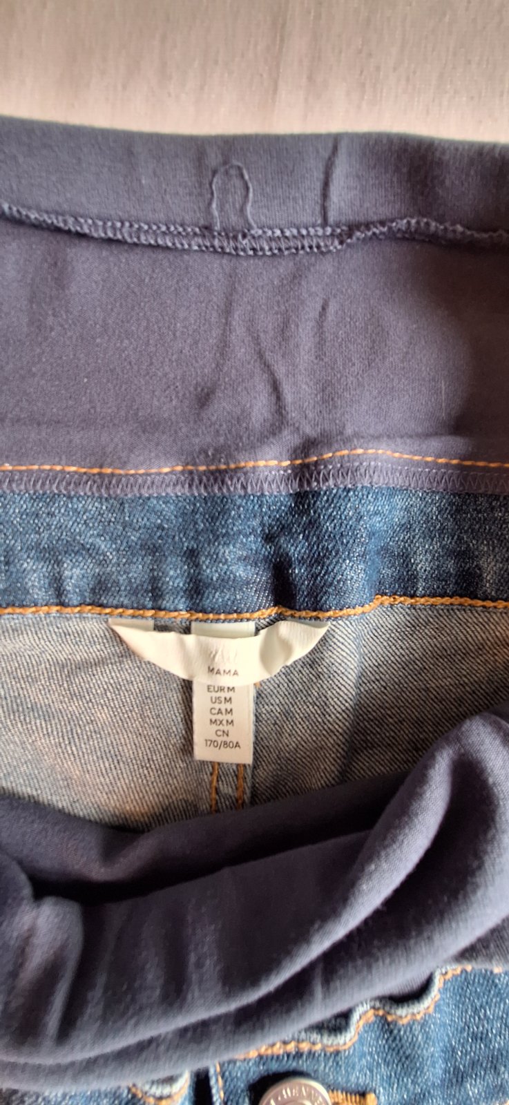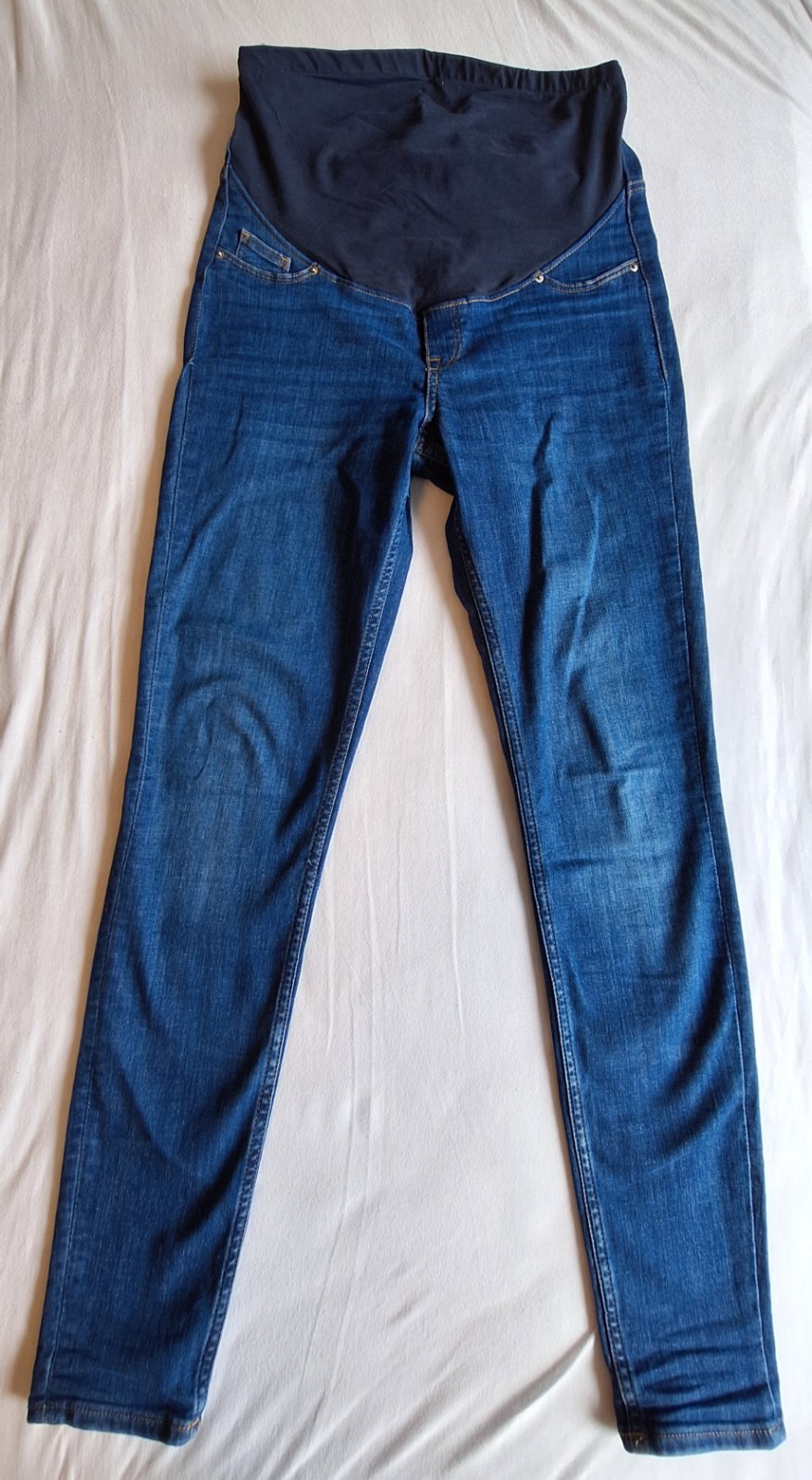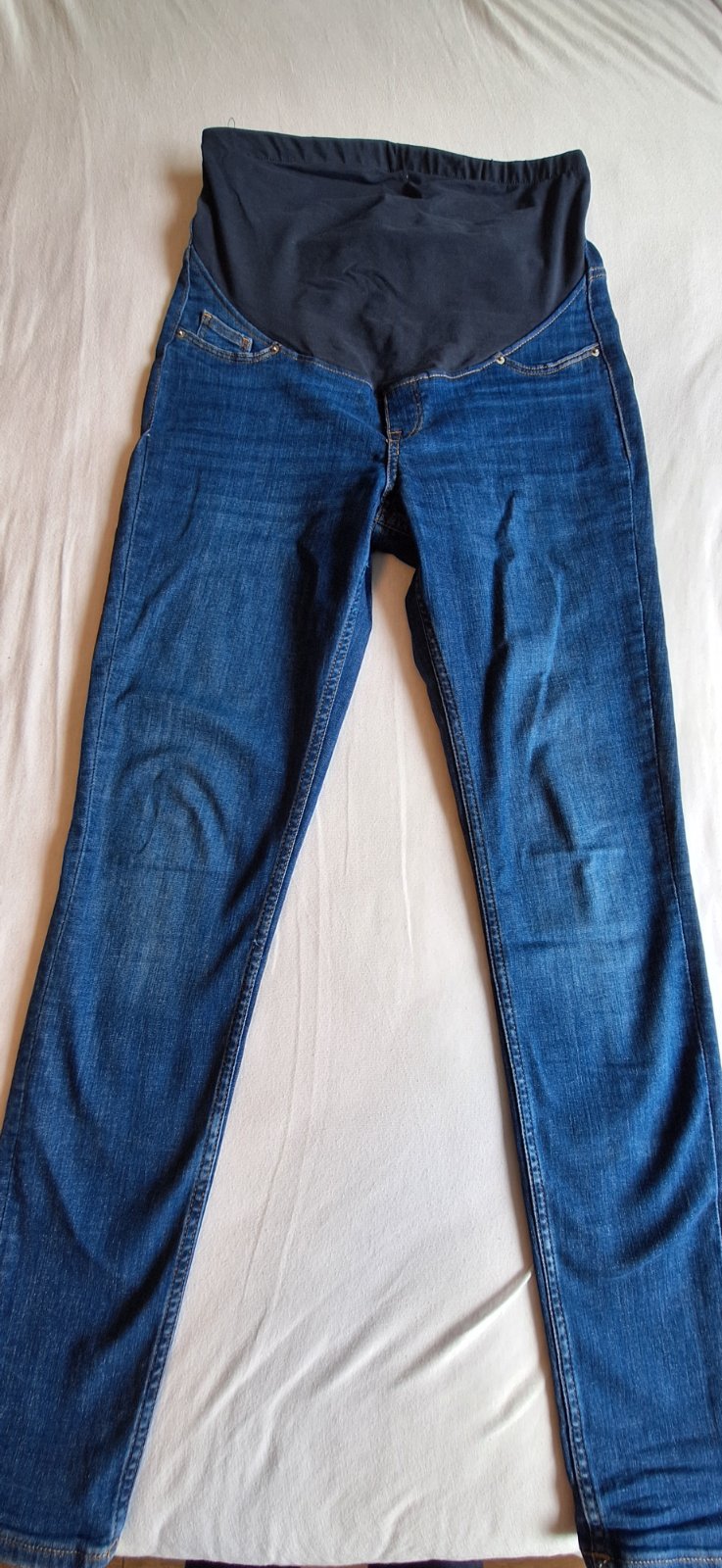 Tehotenské rifle HM Mama skinny jeans veľ.M cena 10Eur+ poštovné nosené 2 mesiace, poškodený lem na gumičku, dá sa zašiť,viď foto