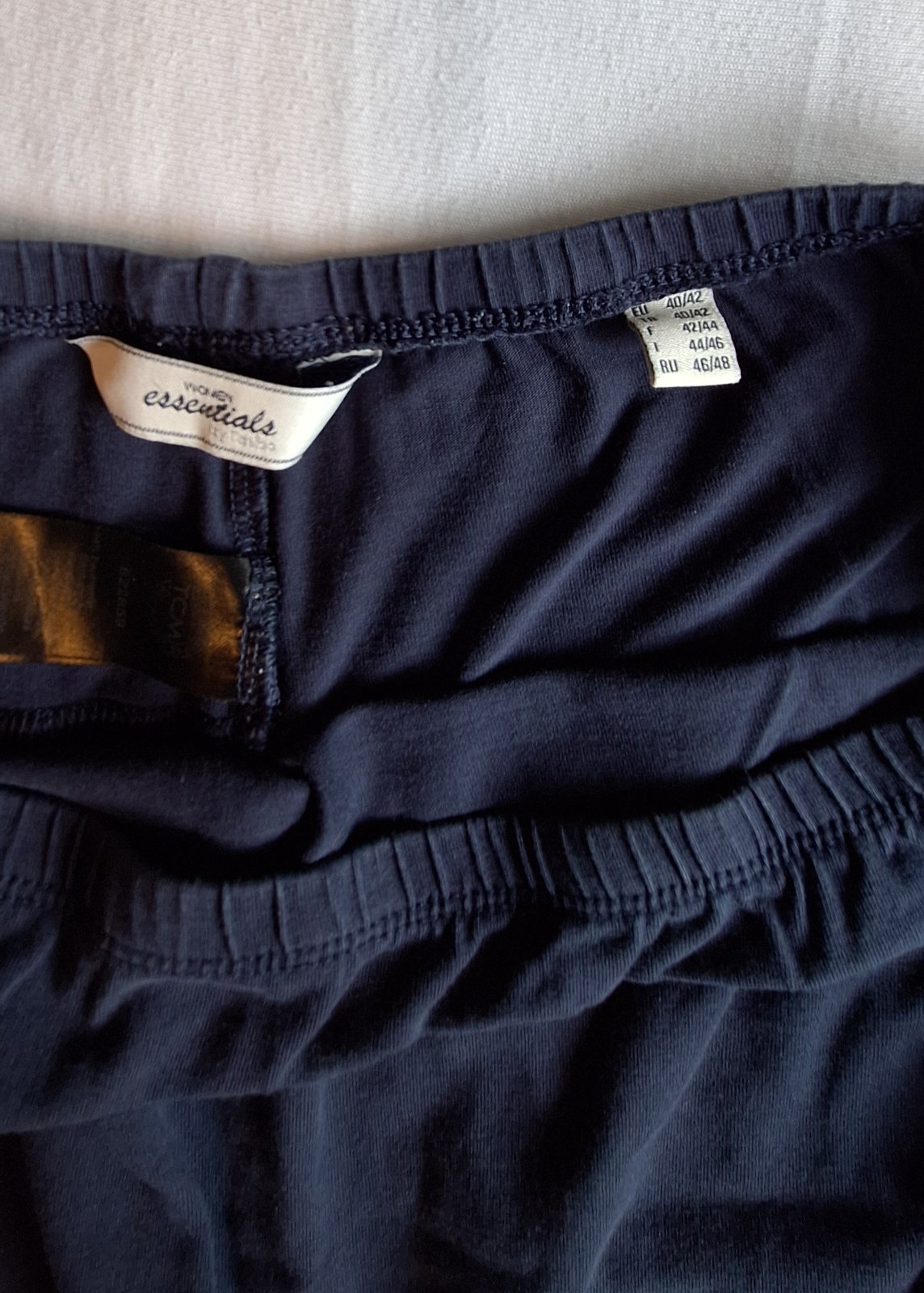 Tehotenské leggíny Tchibo veľ. 40/42 tmavomodré bez poškodenia a čierne sú tam dve bodky od sava, viď.foto. Cena spolu 3Eur + poštovné.