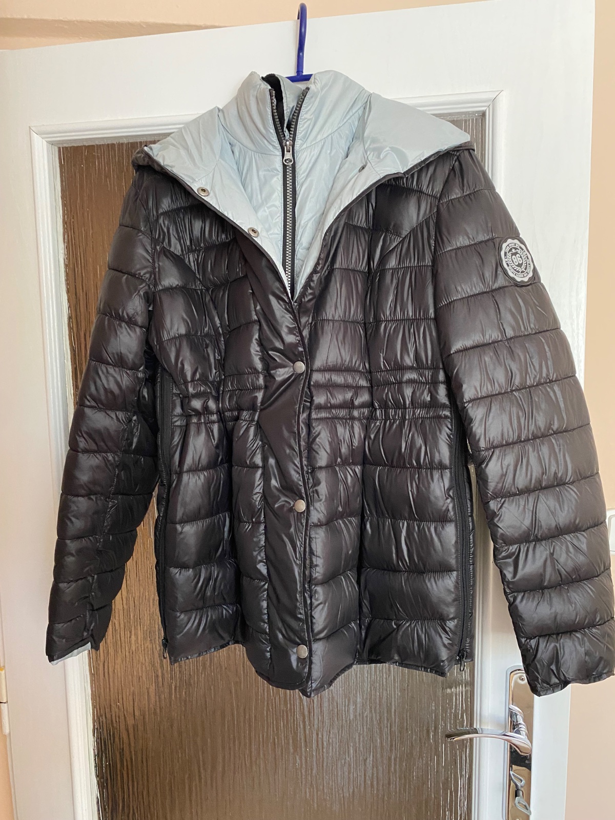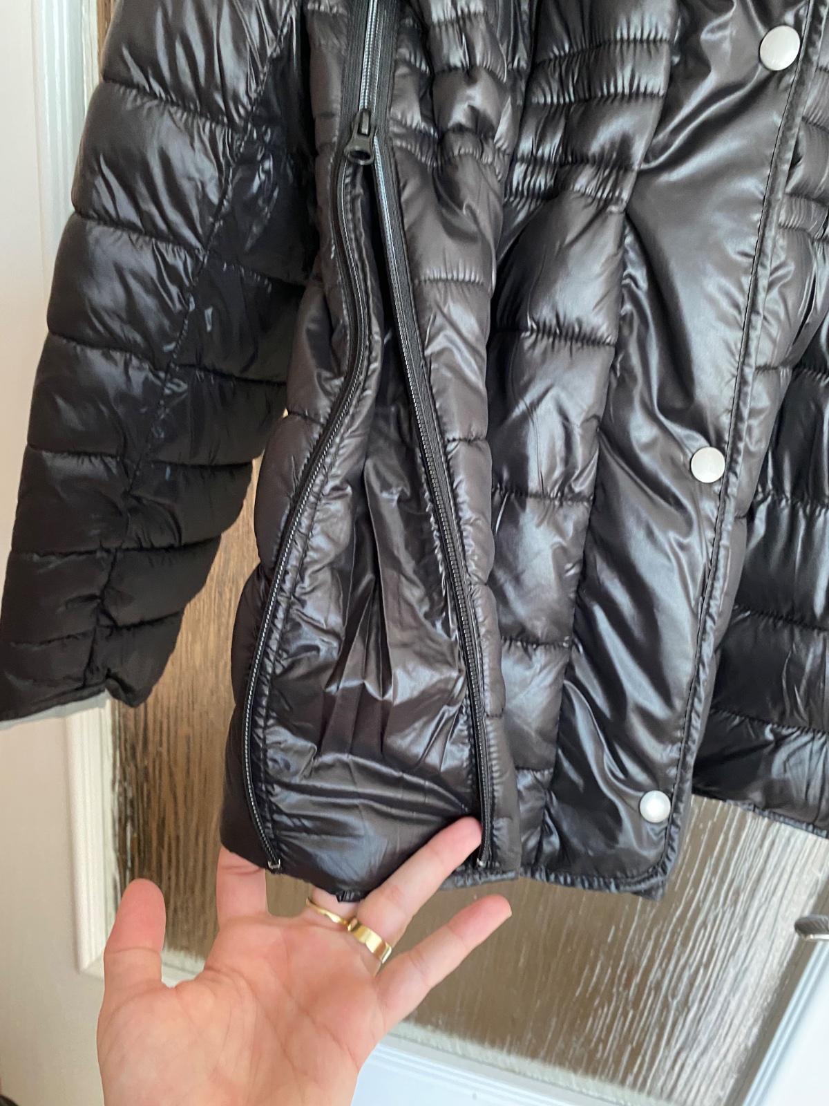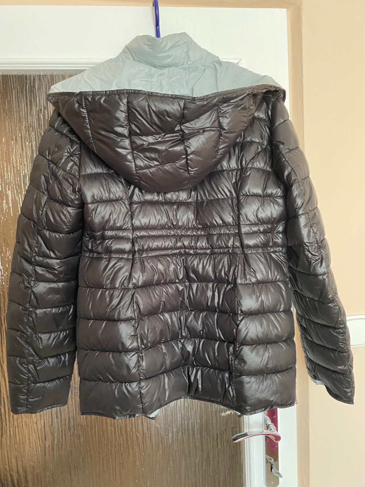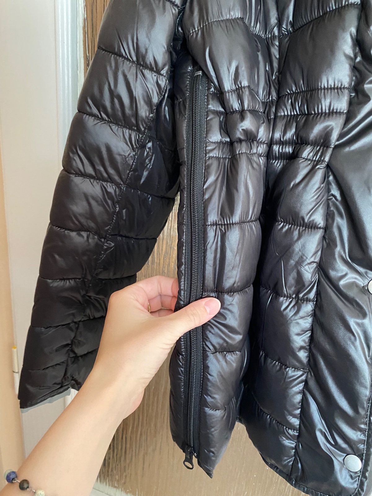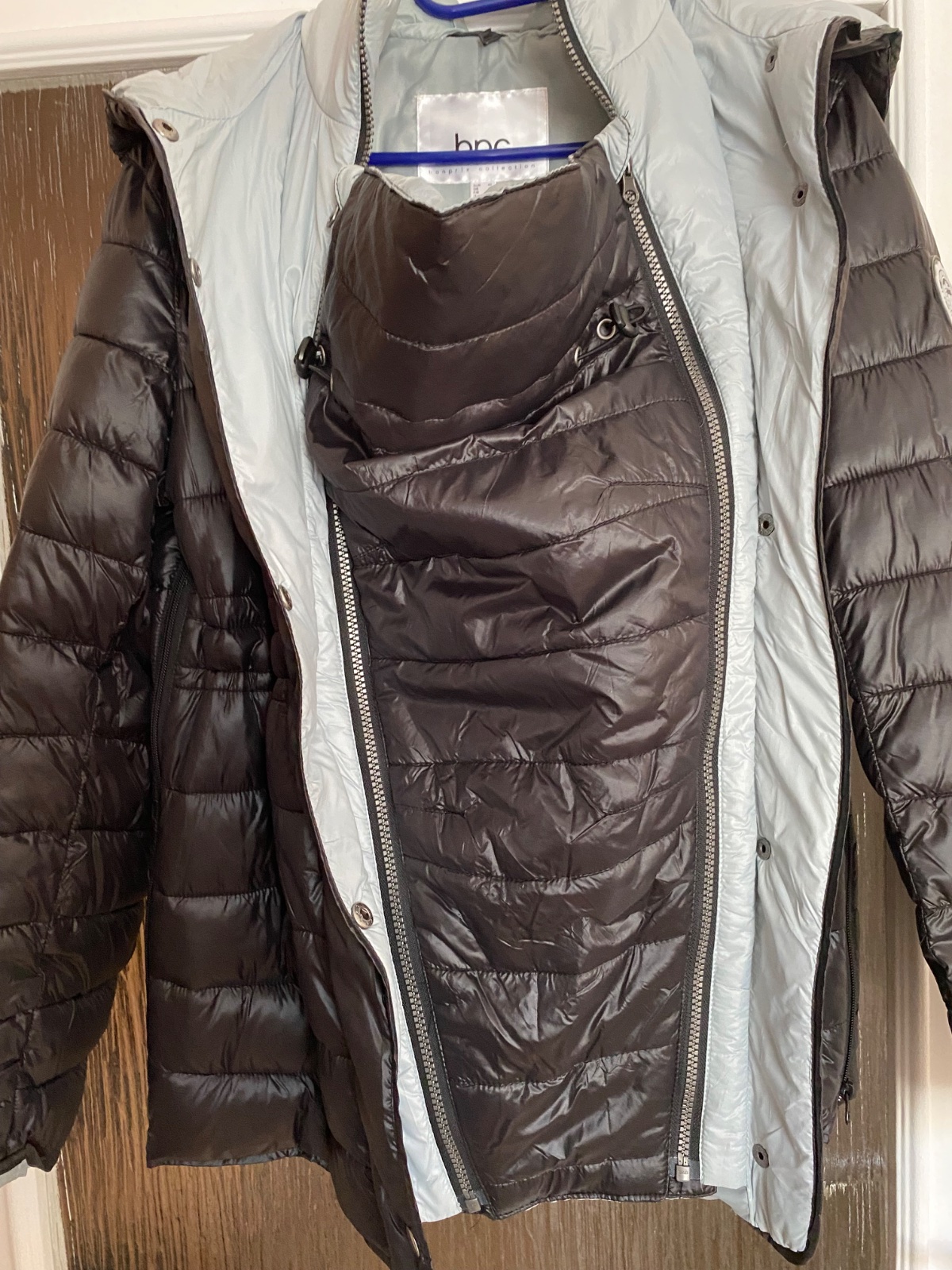 Velmi prijemna materska vetrovka. Tensia, s rozsirujucimi zipsami po bokoch, s gumickami na stiahnutie vo vnutri. Moznost pouzit aj bez rozsirenia na babatko. S kapucnou a vreckami. Oblecena raz. Oteplilo sa prudko a ostala nevyuzita. Bez poskodenia